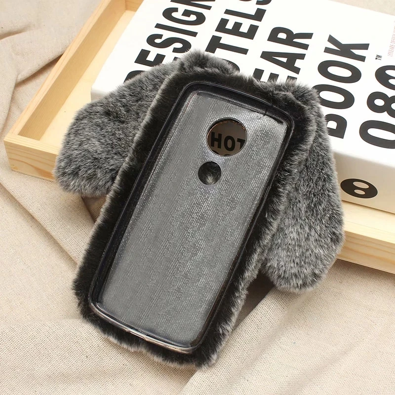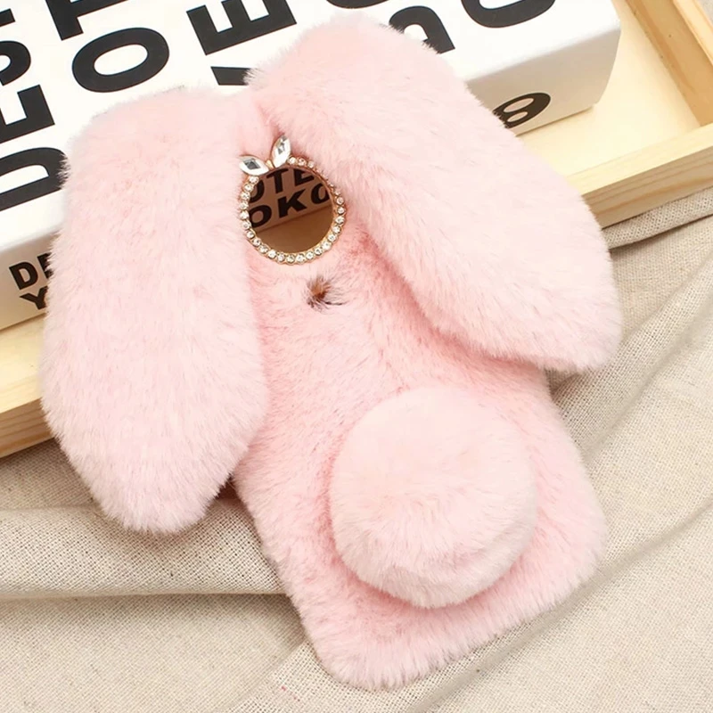 Теплые плюшевые чехлы с кроличьим мехом и бриллиантами для телефоно...