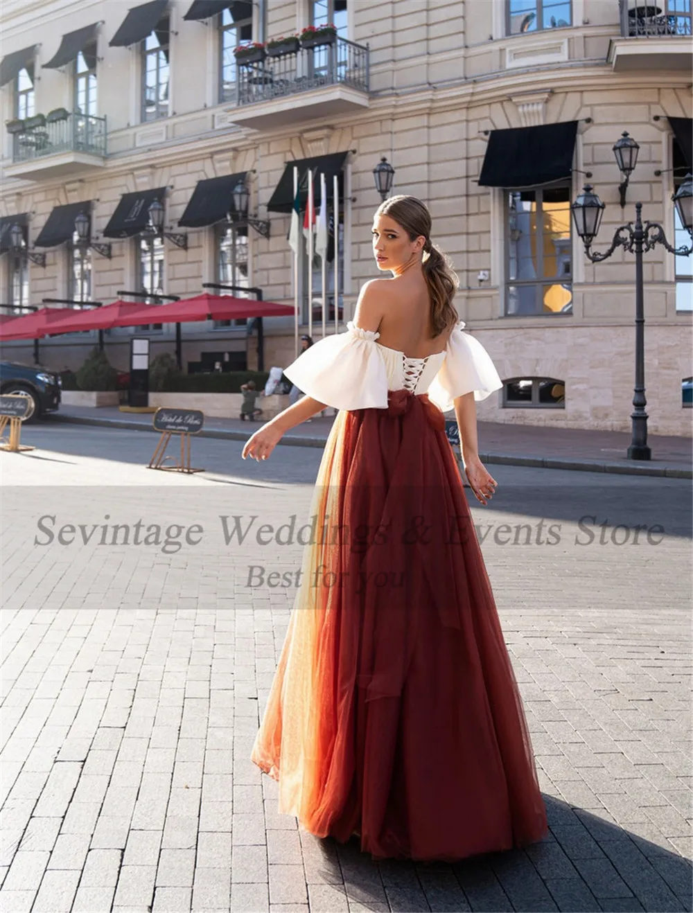 Женское вечернее платье Sevintage, длинное плиссированное платье из тюля цвета слоновой кости, с коротким рукавом, для выпускного вечера