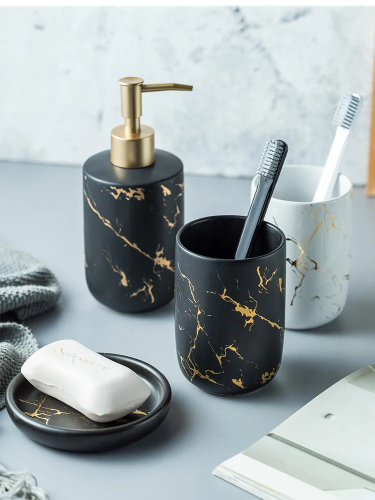 Набор керамических аксессуаров для ванной комнаты с мраморным узором в скандинавском стиле, Набор держателей для мыла, лосьона, зубных щеток