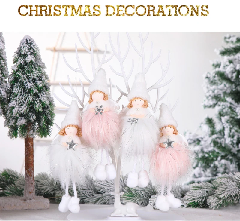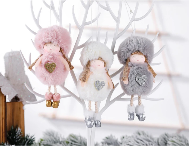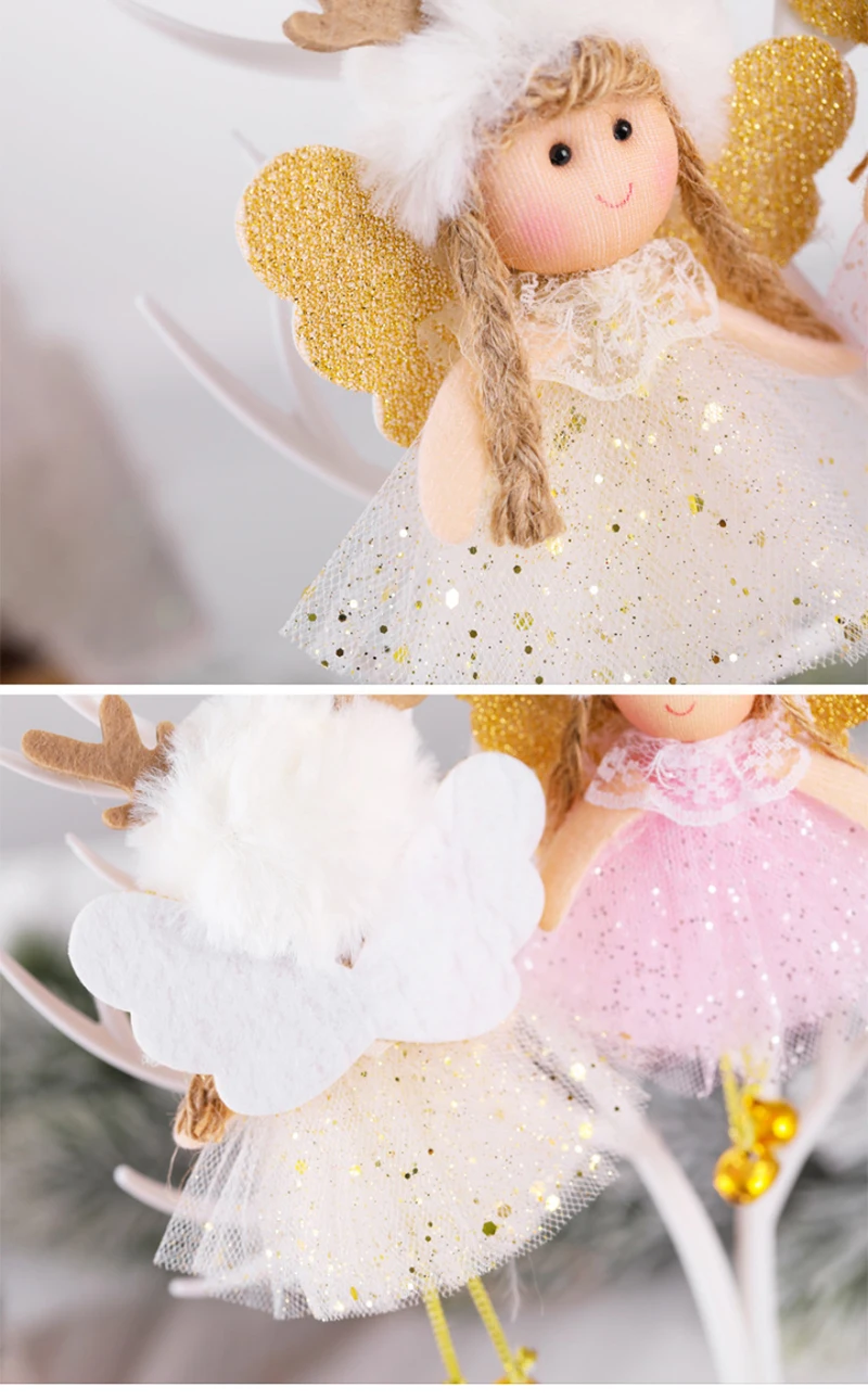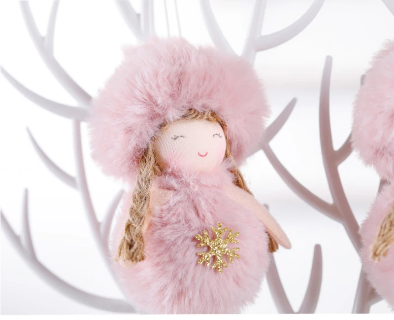 Рождественские куклы-ангелы, розовые, белые плюшевые подвесные укра...