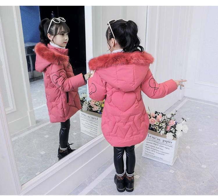 Зимняя новая пуховая куртка для девочек От 4 до 12 лет, пуховые куртки для маленьких девочек, утепленная детская верхняя одежда с капюшоном для подростков, пальто для девочек с вышивкой