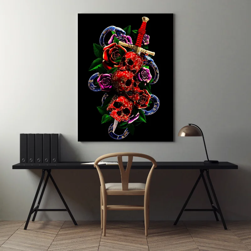 Алмазная 5D Вышивка череп, цветок, сделай сам, вышивка крестиком, украшение для дома