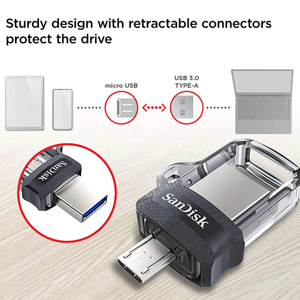 -* SanDisk Ultra Dual Drive m3.0 позволяет легко переносить содержимое с телефона на компьютер. С разъемом micro-USB на одном конце и разъемом USB 3,0 на другом, диск позволяет легко перемещать содержимое между устройствами-от вашего Android смартфона или планшета к ноутбуку, ПК или компьютер Mac.