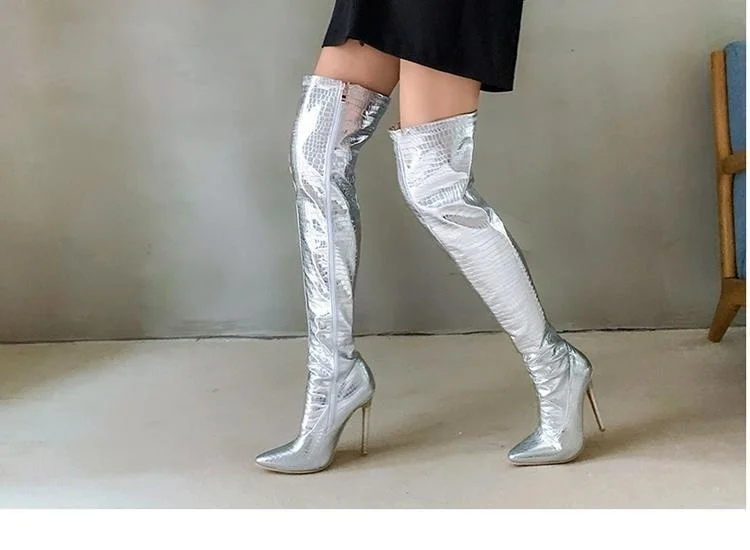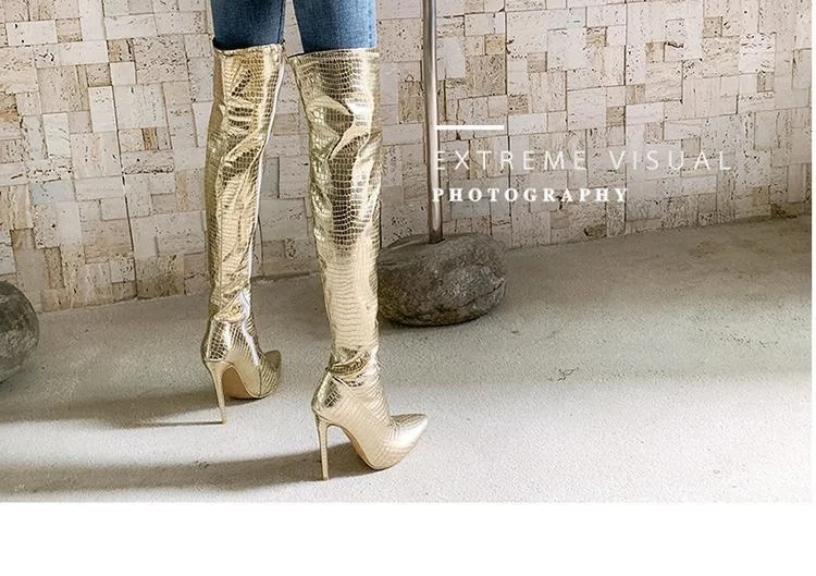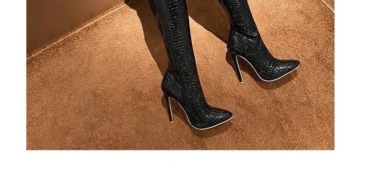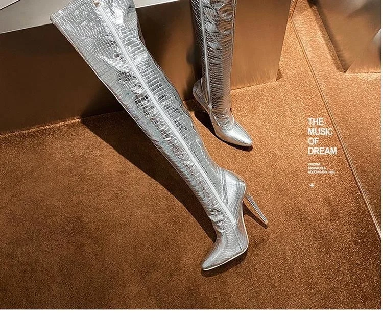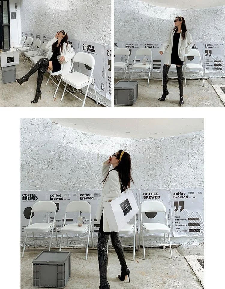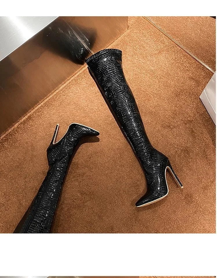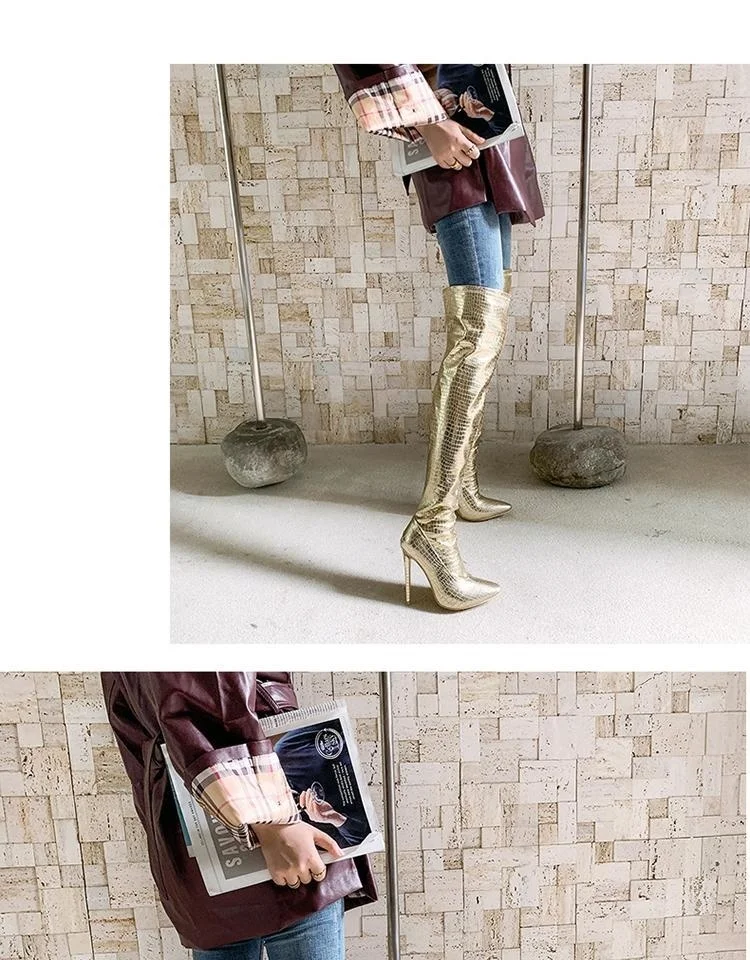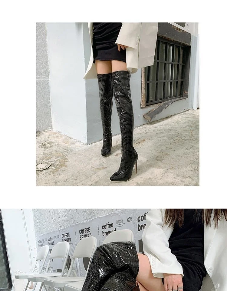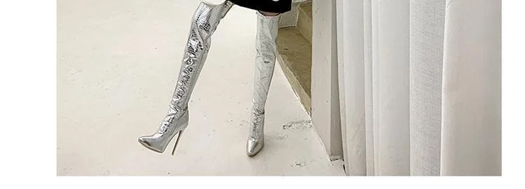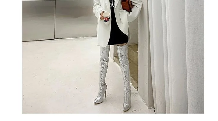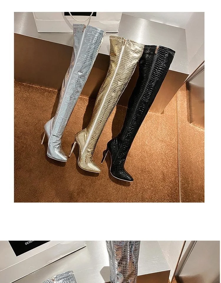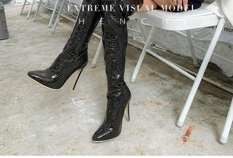 Женские сапоги до колена, с острым носком и очень высоким каблуком, большие рыцарские сапоги для ночного клуба, модель автомобиля, Осень-зима 2020