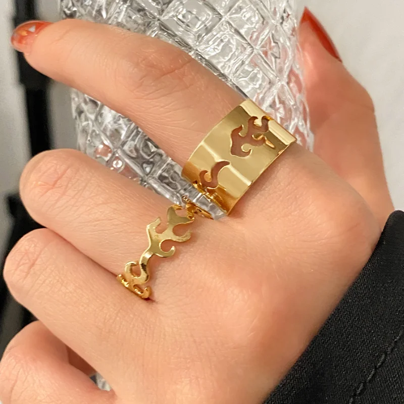 2 шт.компл. кольцо в форме пламени, полые парные кольца, открытые Р...