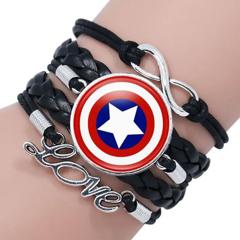 Браслет Marvel мстители, Человек-паук, Капитан Америка, кожаные аксессуары, Аниме фигурки, детские игрушки, подарки для мальчиков