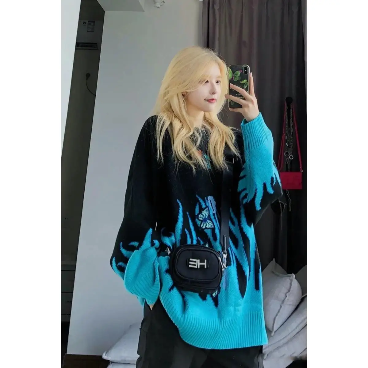 Новинка 2021, свитер, Женский жаккардовый свитер в стиле хип-хоп с бабочкой, женский свитер, вязаный Топ в стиле пары, свободный свитер
