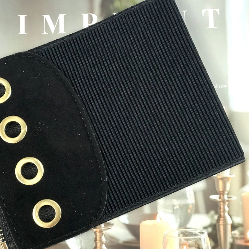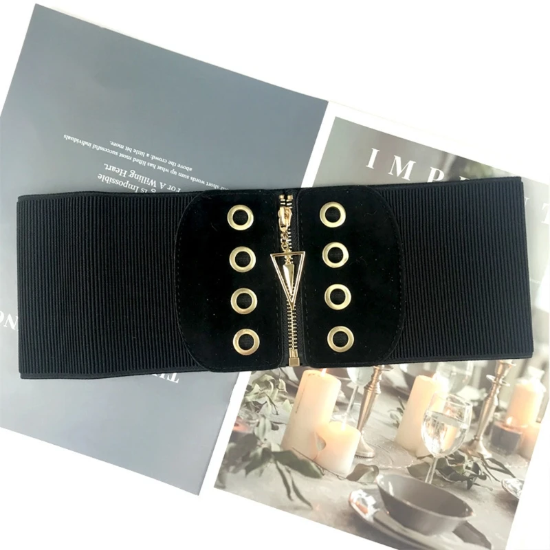 Женский ультра широкий пояс для платья, женский тонкий полой с золотым отверстием, черный эластичный пояс на молнии, шейпер, ремешок, корсет, пояс S24 21