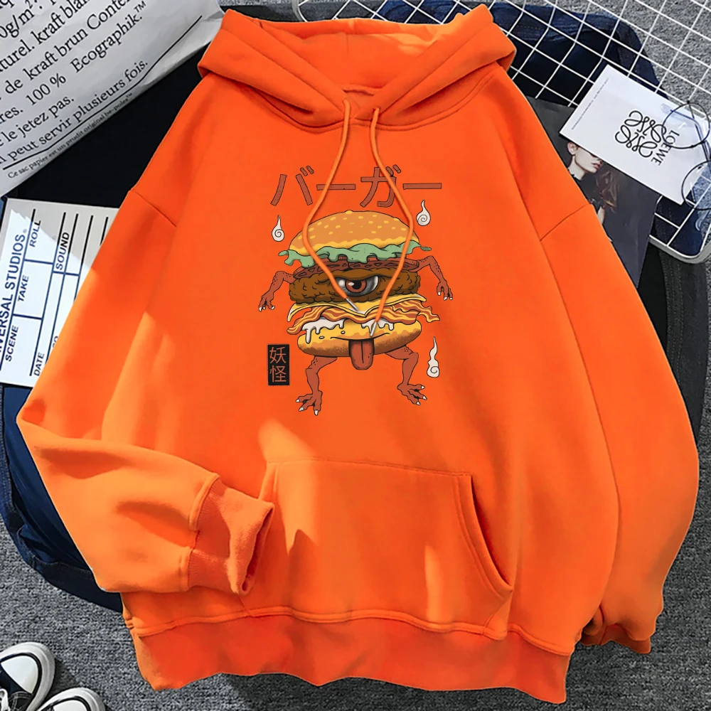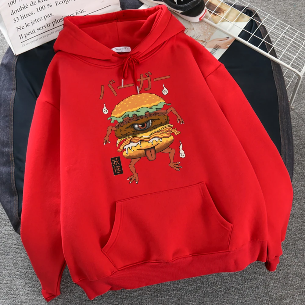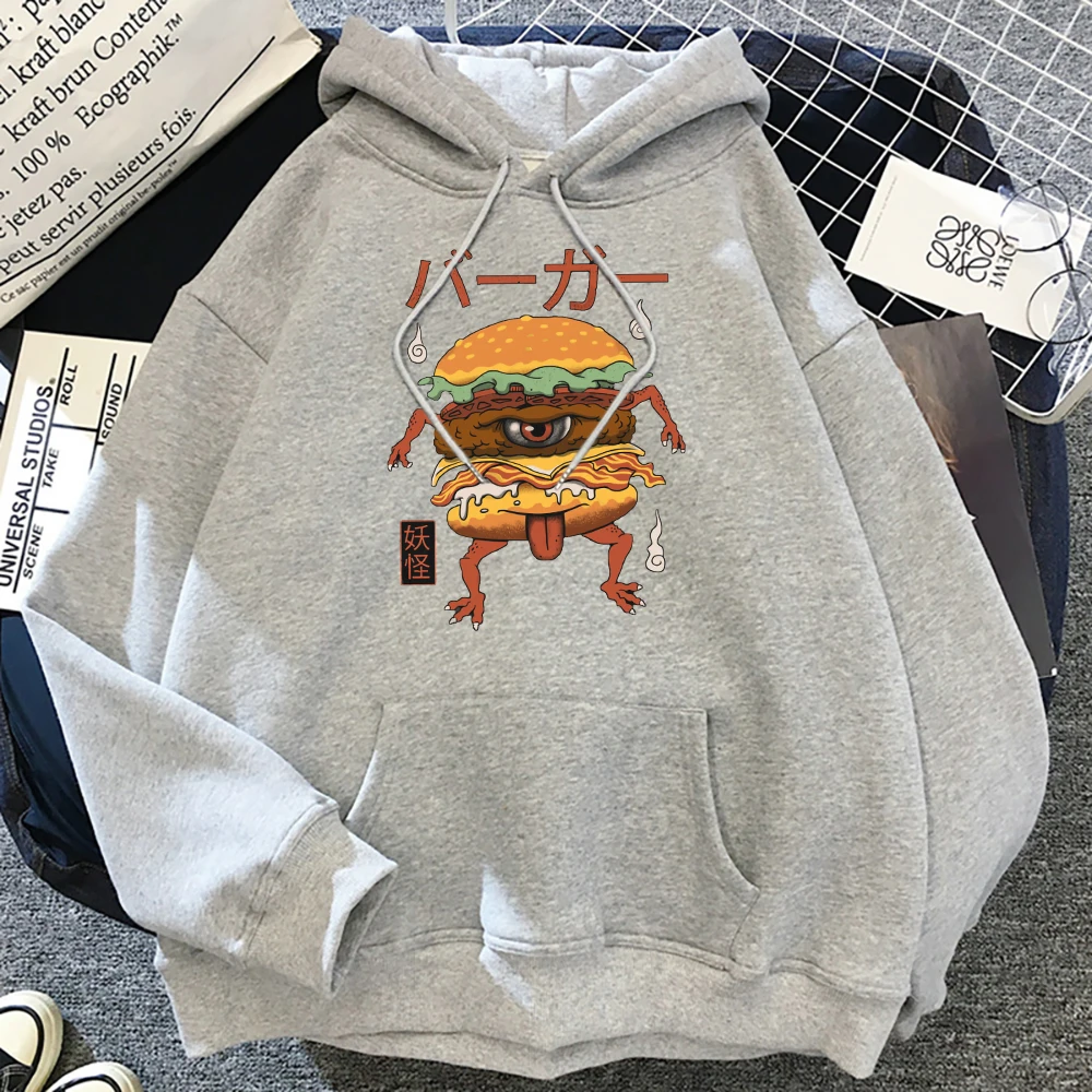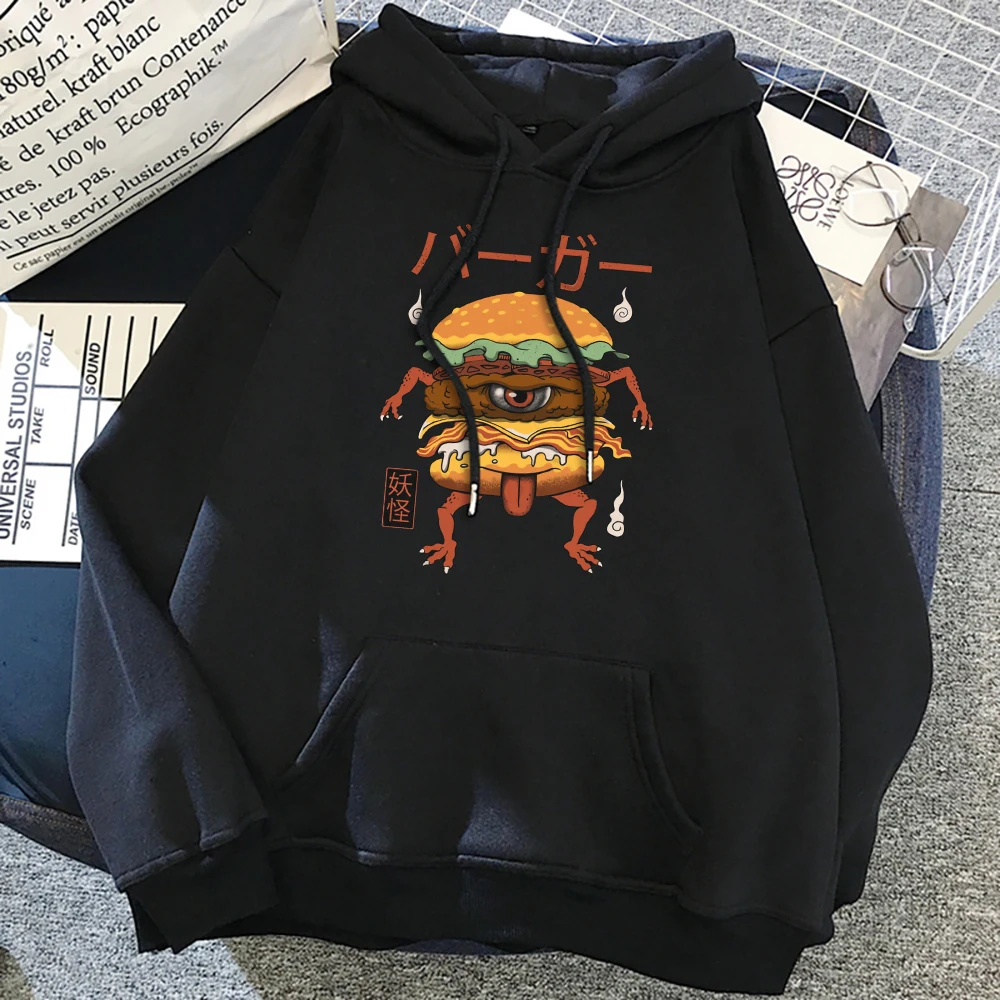 Японская манга, монстр, гамбургер, принт, женская уличная одежда, пуловер для творчества, толстовка с капюшоном в стиле хип-хоп, большие размеры, модные толстовки с круглым вырезом