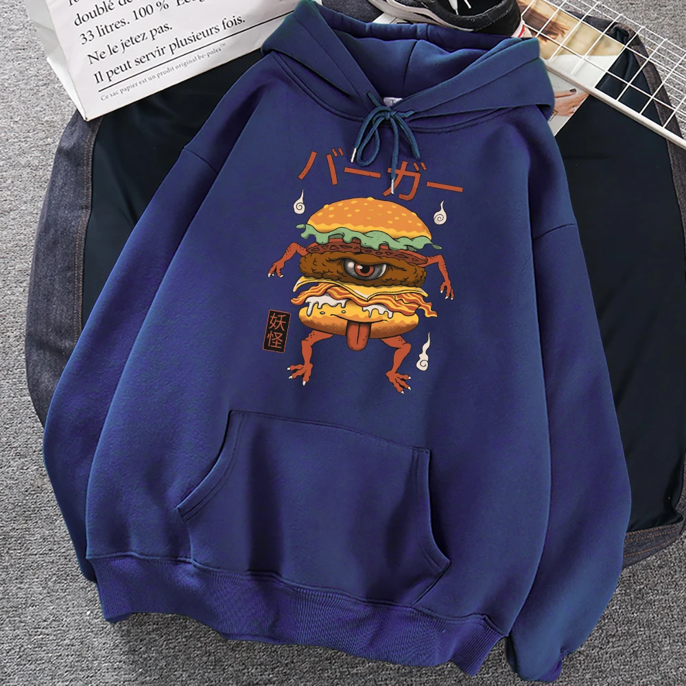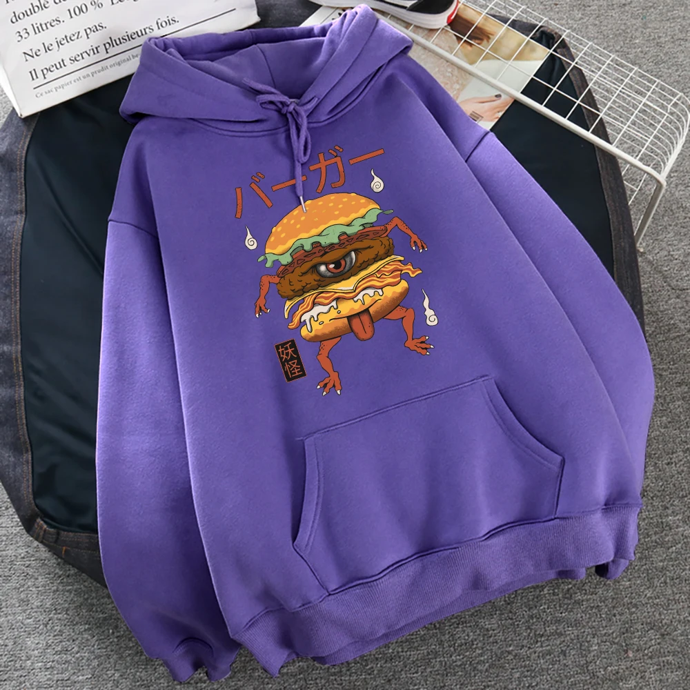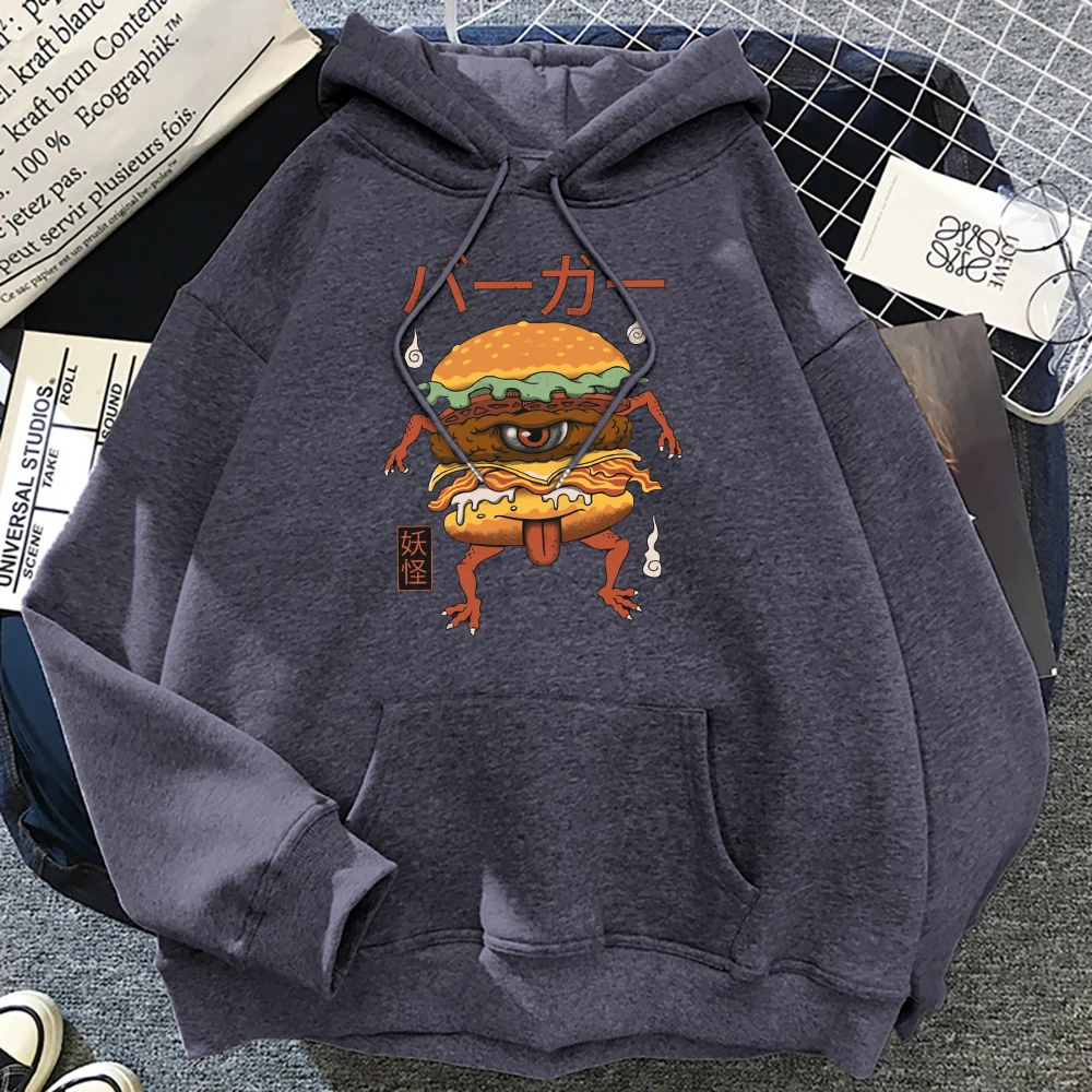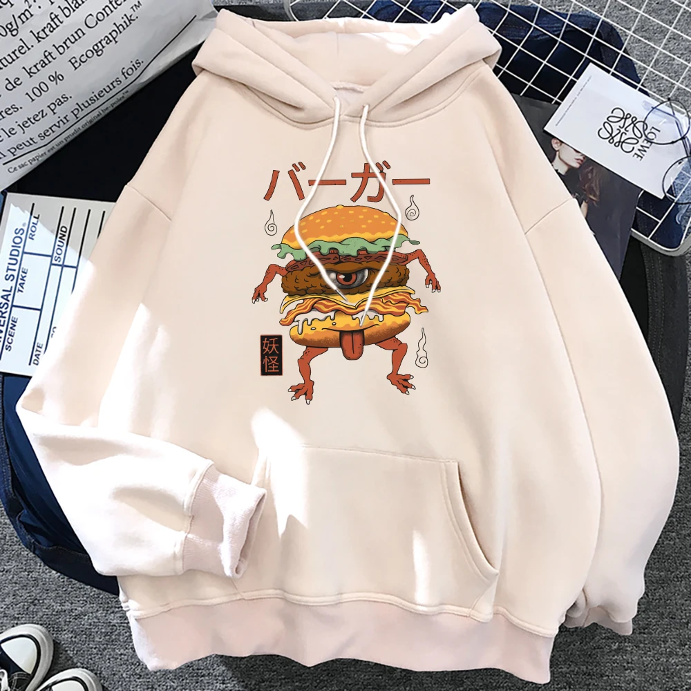 Японская манга, монстр, гамбургер, принт, женская уличная одежда, пуловер для творчества, толстовка с капюшоном в стиле хип-хоп, большие размеры, модные толстовки с круглым вырезом