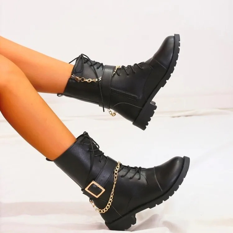 Женские мотоциклетные ботинки на цепочке, массивная женская обувь 2022, ботинки челси на шнуровке, новые зимние спортивные повседневные ботильоны, обувь из искусственной кожи