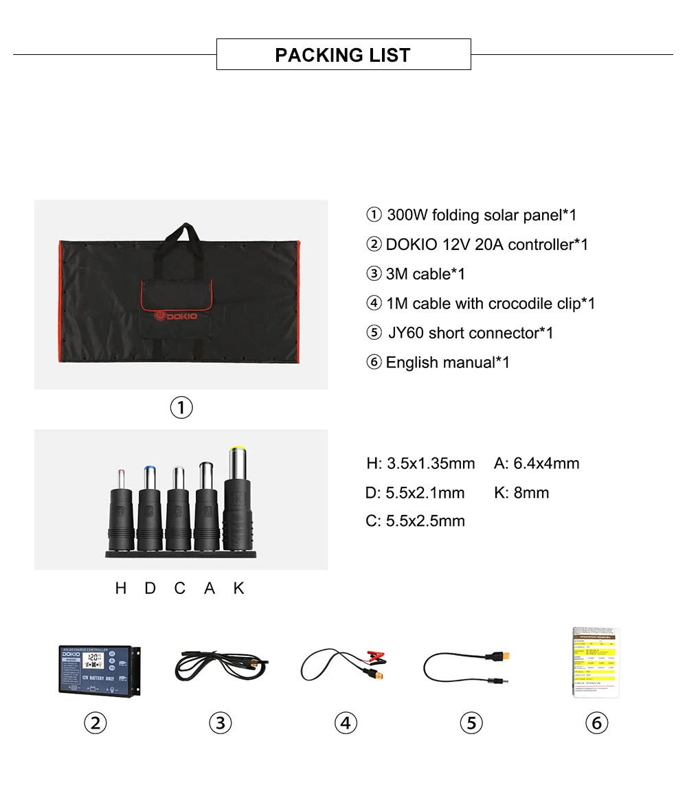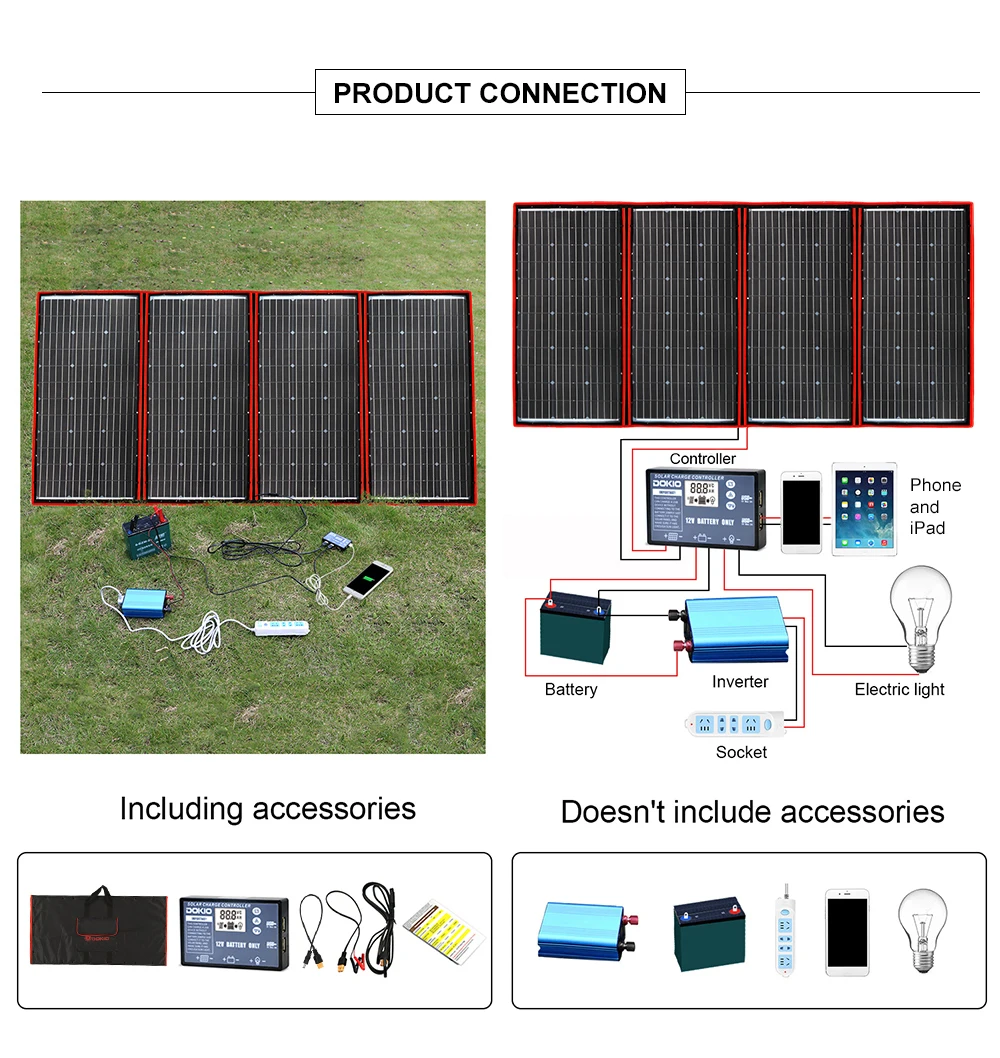 Солнечная панель Dokio Складная портативная, 100200300 Вт, 18 в, 12 В, 10 А