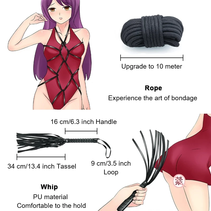 ContentEye Mask, Gag, Collar, Whip, Rope, Handcuffs, Shackles