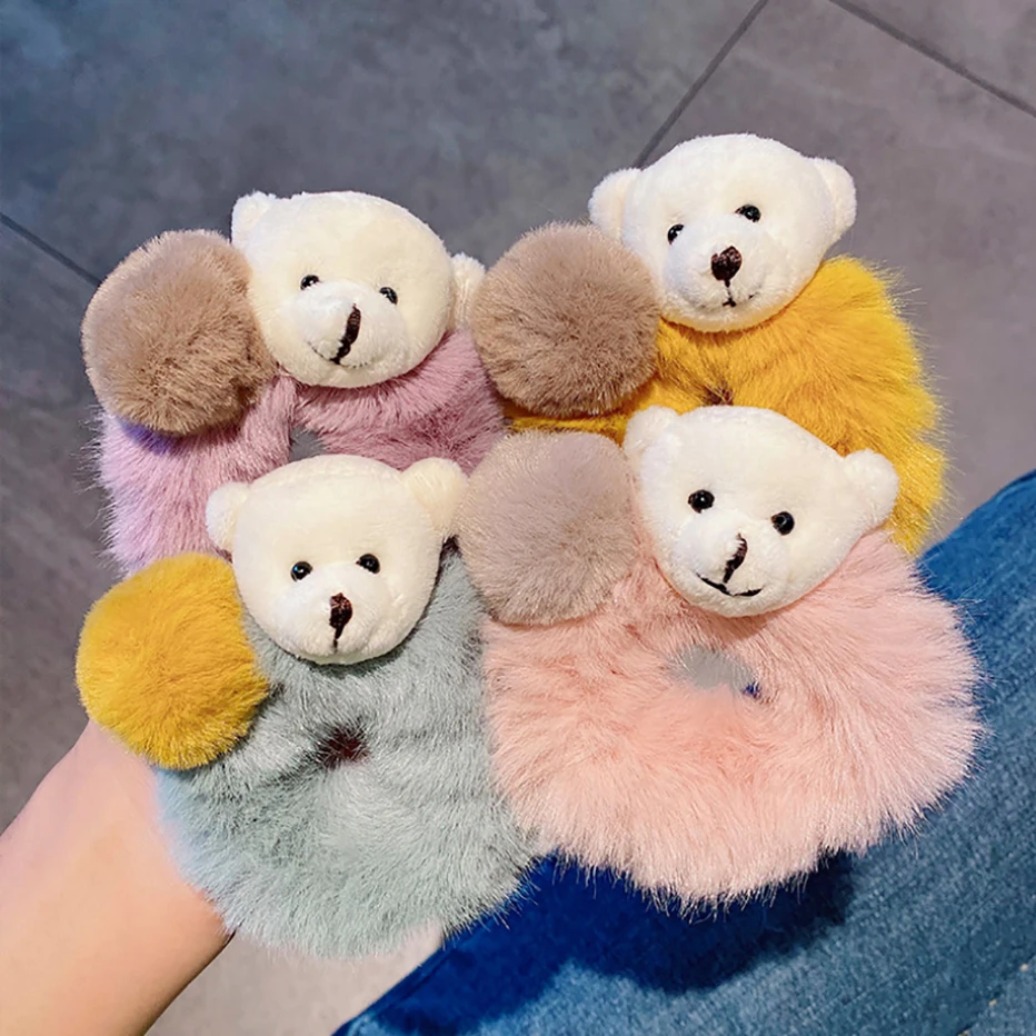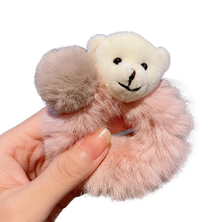 Милые пушистые эластичные повязки для волос с медведем в Корейском стиле милый держатель для женских завязок для волос для девочек меховые аксессуары для волос