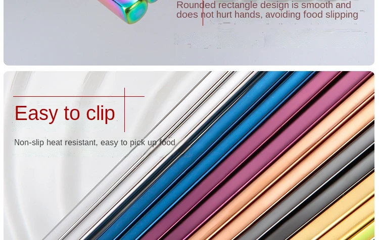 1 пара квадратных палочек для еды из нержавеющей стали, Нескользящи...