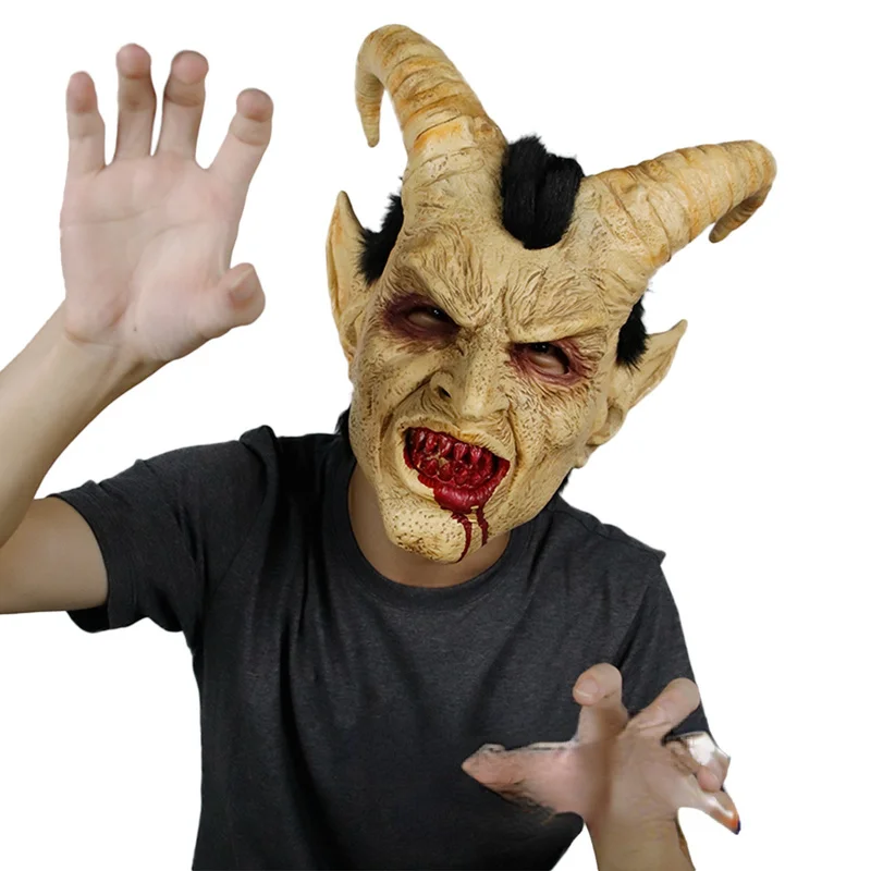 Маска для косплея Lucifer, демон, дьявол, рог, латексные маски с кровавым Ротом, реквизит для костюма Хэллоуина