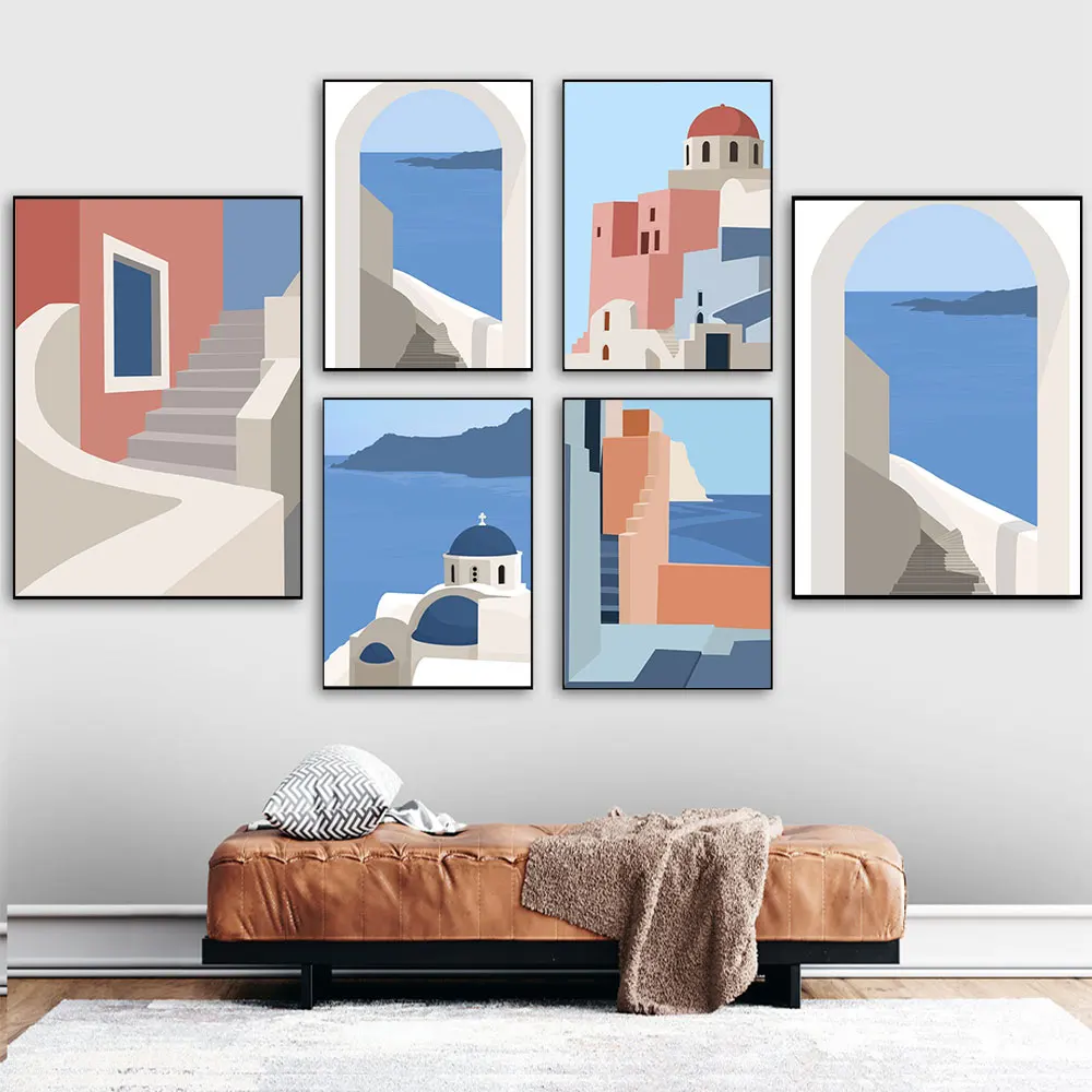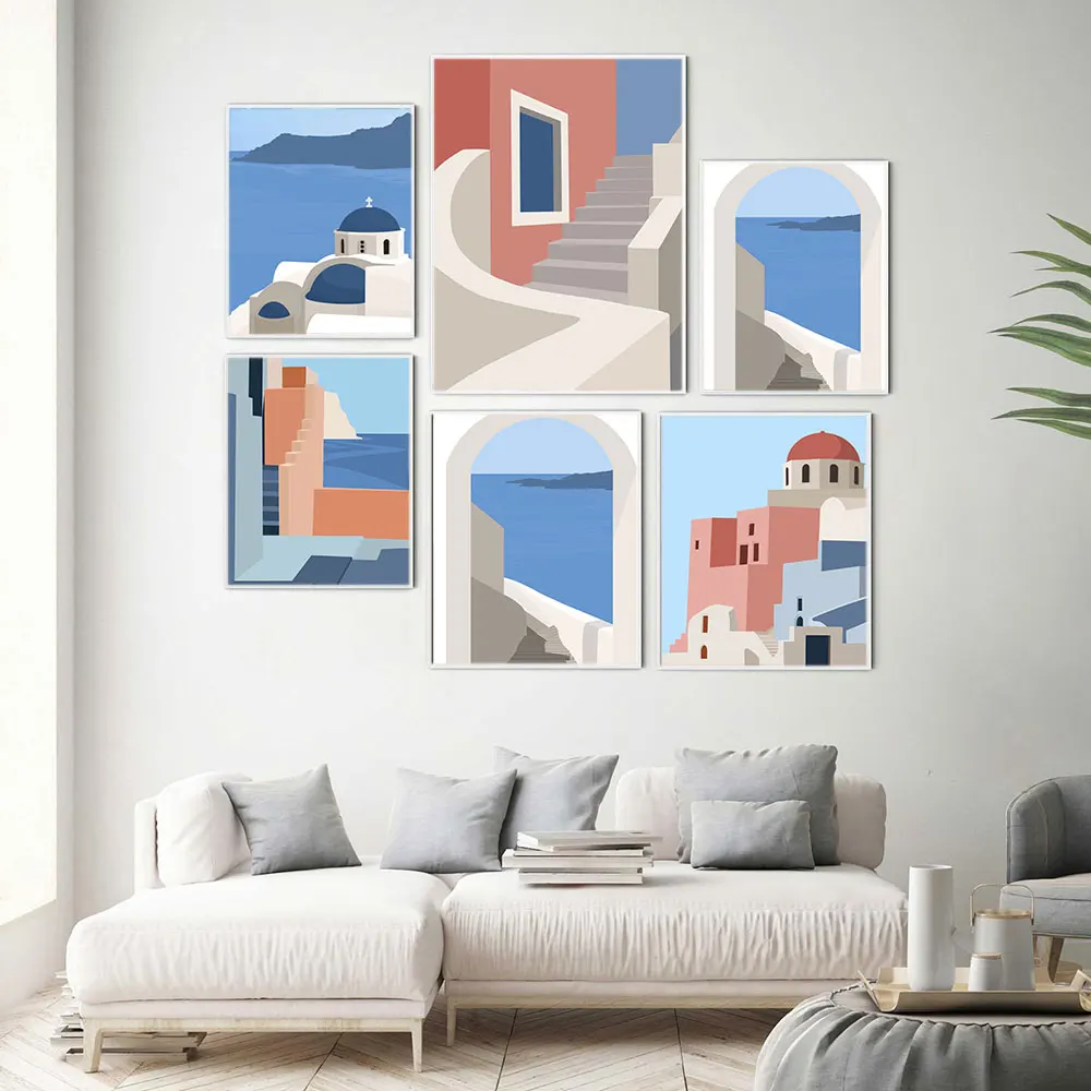 Минималистичный постер для путешествий, Санторини, Греция, искусство, печатная картина, Современная естественная Настенная картина для декора гостиной