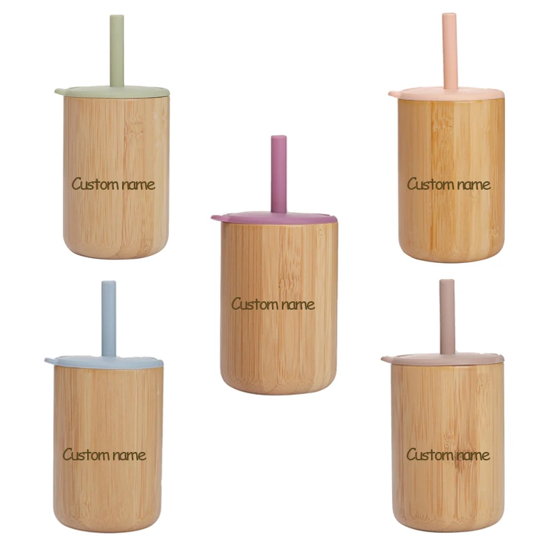 1 шт. пользовательское имя детская питьевая Сиппи чашка Водонепроницаемая герметичная бамбуковая чашка для кормления детская тренировочная чашка с соломинкой подарок BPA бесплатно