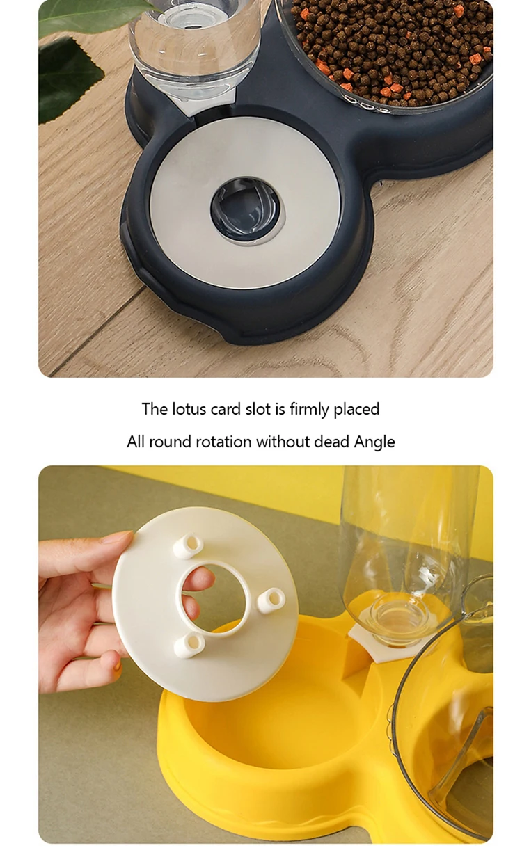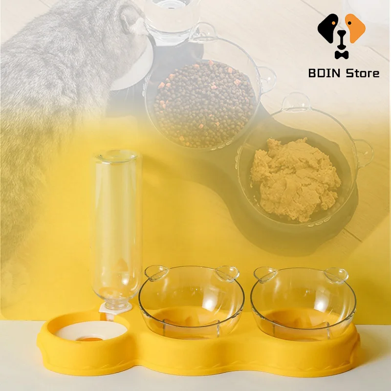 Рисунком собачки и котика двойной Еда чаша влагостойкий рот с тремя объективами автоматической подачи с защитой от опрокидывания ПЭТ миска для кота, собаки миска для перекуса чаша