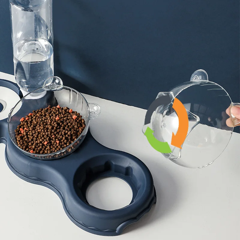 Двойная миска для кошек, влагостойкая ротовая трехцелевая автоматическая кормушка, антиопрокидывающаяся миска для домашних животных