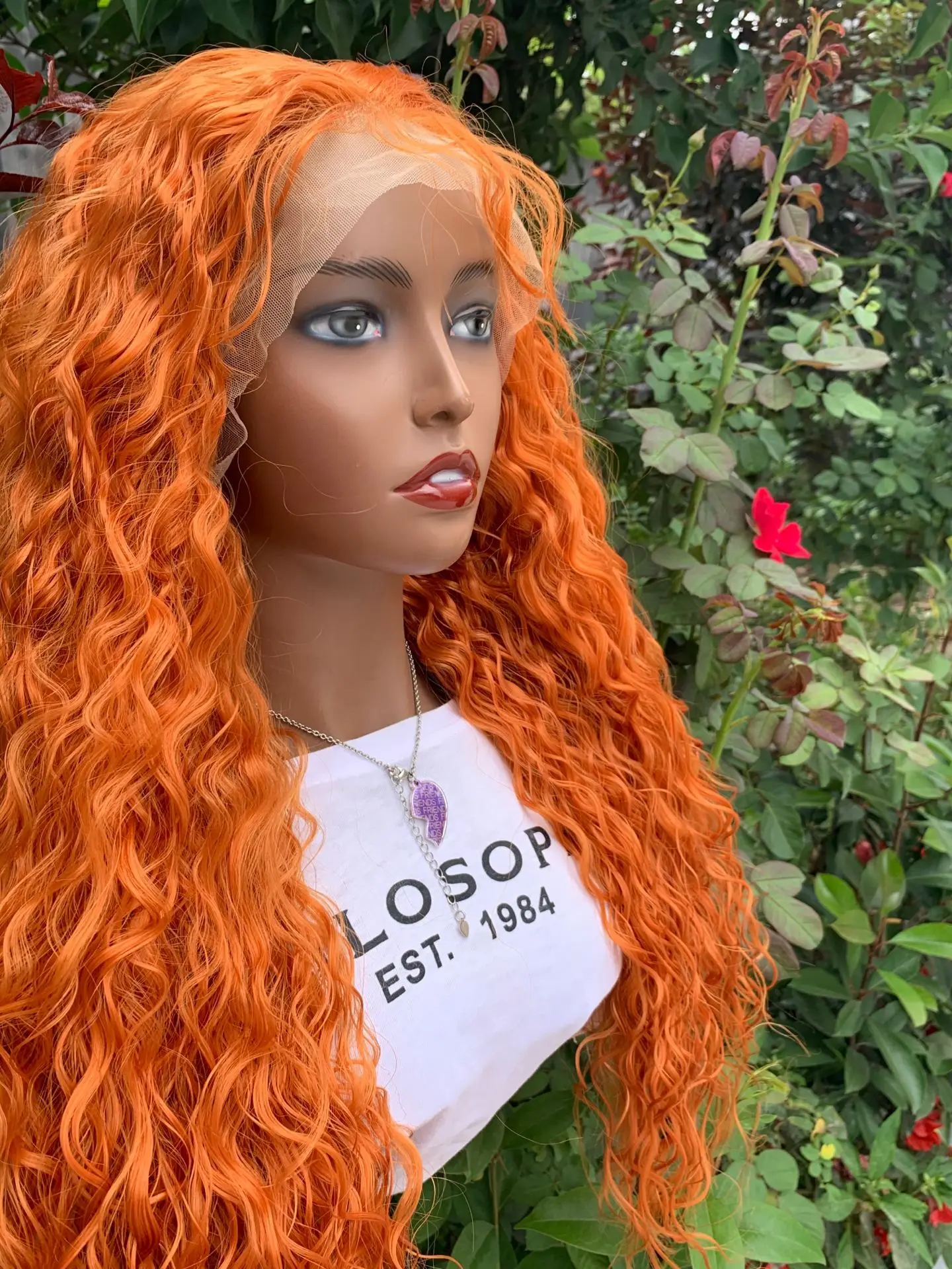 Имбирный оранжевый, плотность 180%, длинные кудрявые синтетические парики 26 дюймов, парик на шнуровке спереди для черных женщин, термостойкий Повседневный Косплей