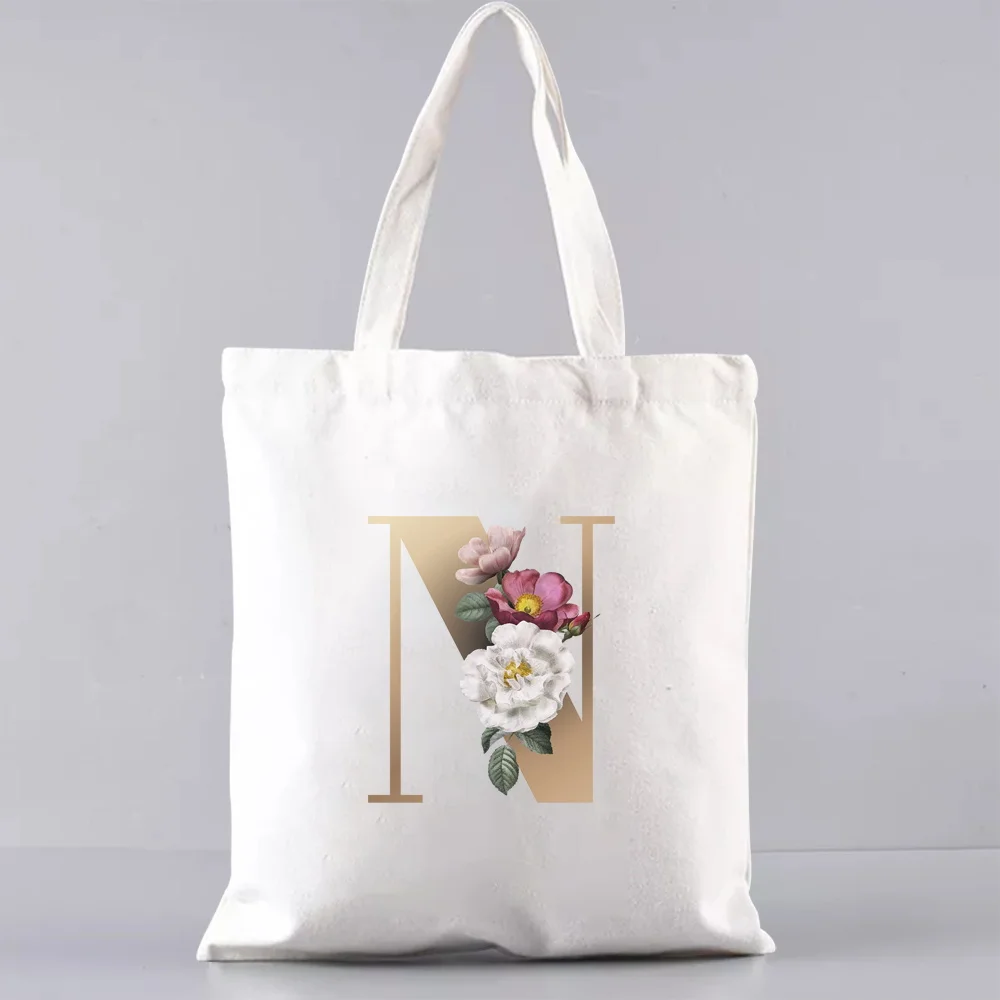 Экологичная сумка для покупок, многоразовый вместительный студенческий шоппер из полиэстера с 26 надписями