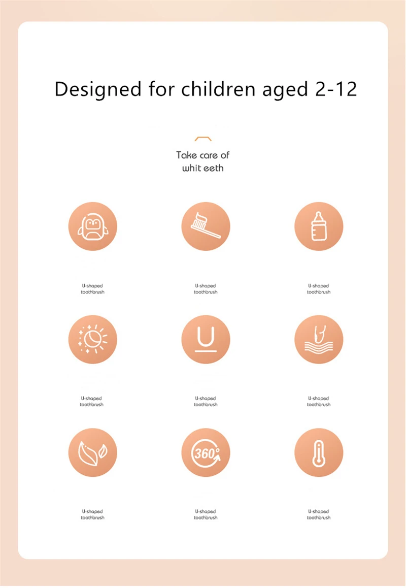 Детская U-образная зубная щетка От 2 до 12 лет, детская зубная щетк...