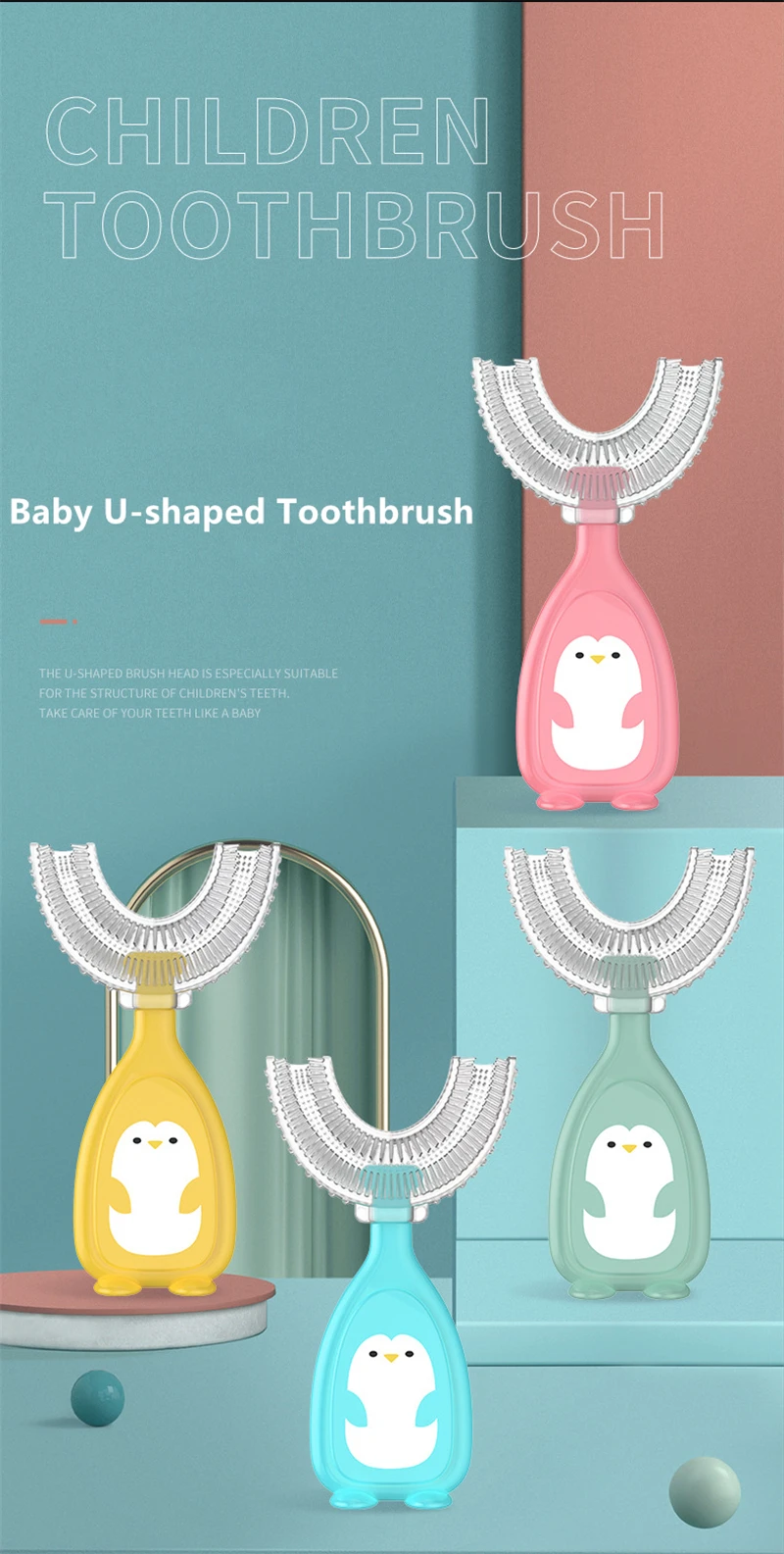 Детская U-образная зубная щетка, детская зубная щетка для ухода за ...