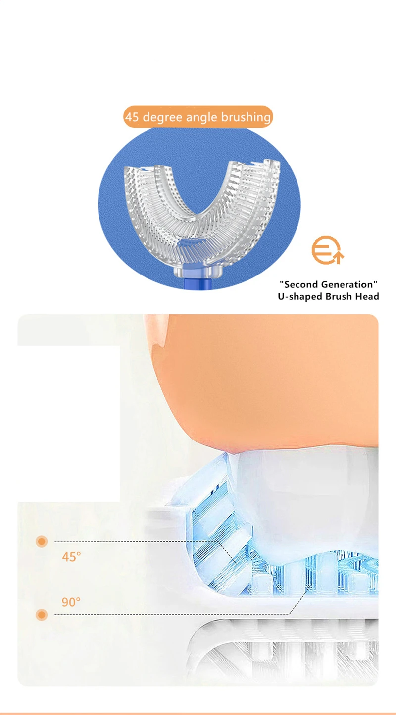 U-образная зубная щетка, мягкая силиконовая щетка с головкой, 360 ,...