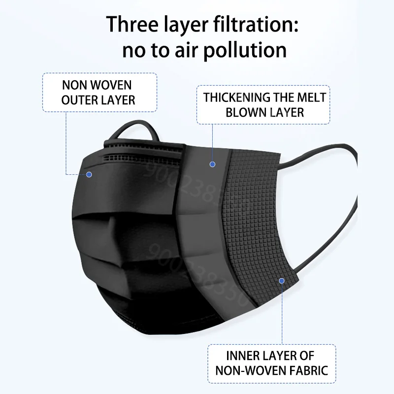 10-500 шт. масок Одноразовые черная маска для взрослых индивидуальн...