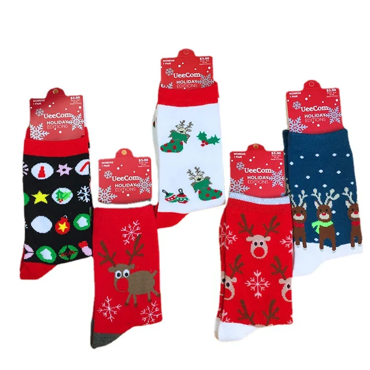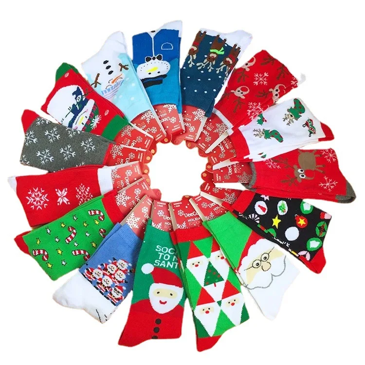 Новые рождественские мужские и женские длинные носки с новогодним принтом милые зимние рождественские носки
