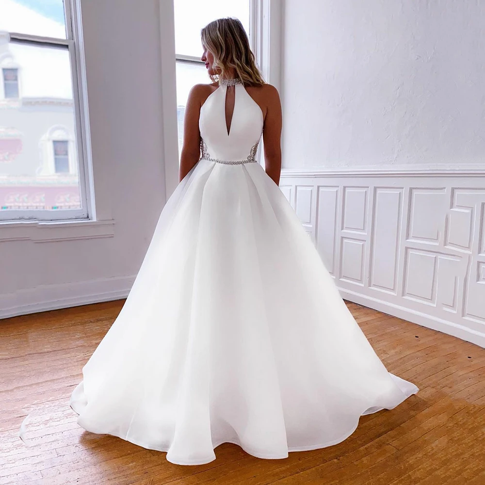 Женское атласное свадебное платье-трапеция, с карманами и открытой спиной, из органзы, размера плюс