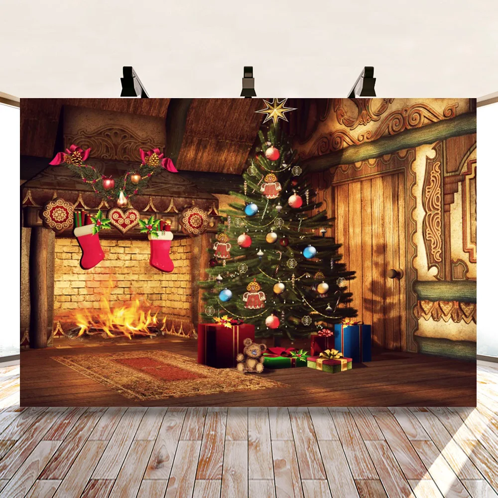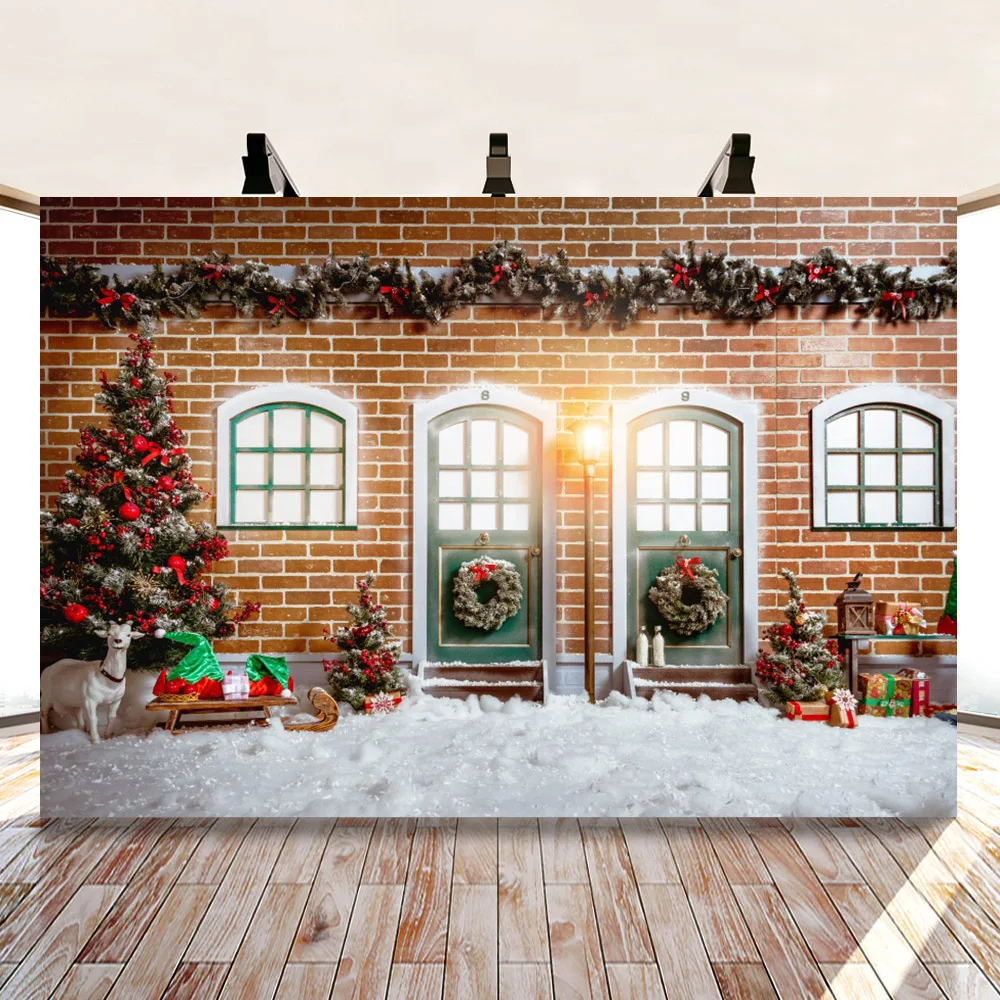 Фон для фотосъемки с изображением зимней снежной сцены дерева подарков саней рождественских декораций реквизит для домашней студийной фотосъемки камин кирпичная стена фон для фотосъемки