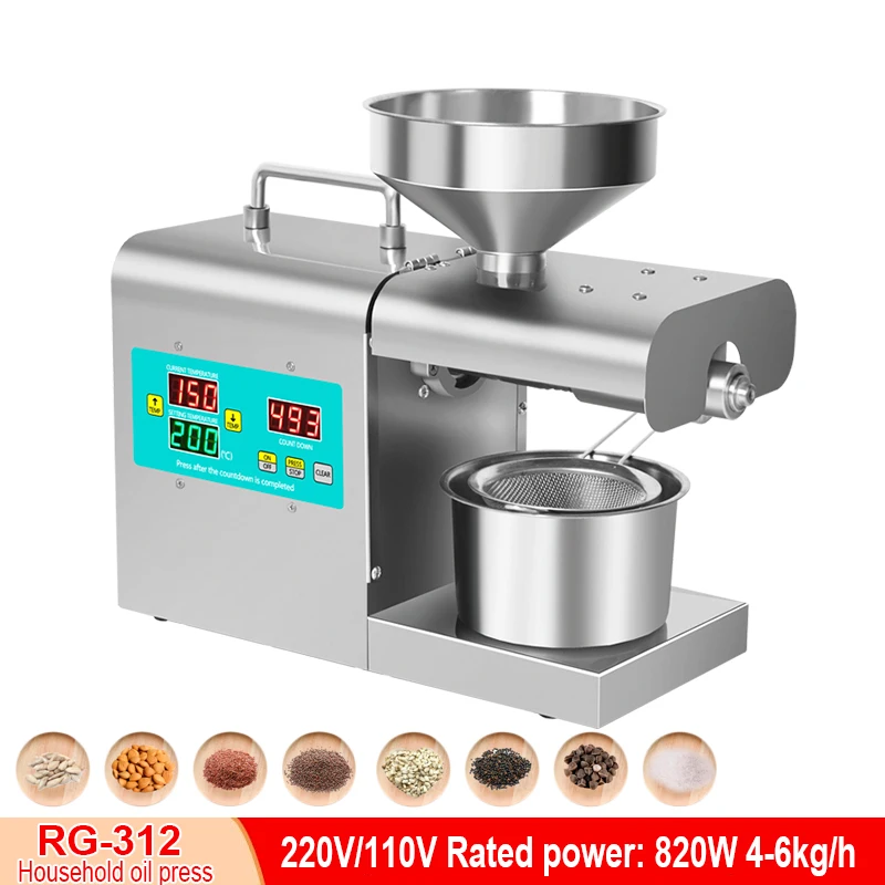Автоматический Масляный Пресс из нержавеющей стали RG-312, холодный Масляный Пресс 820 Вт, бытовой масляный пресс, пресс для оливкового масла семян подсолнечника,
