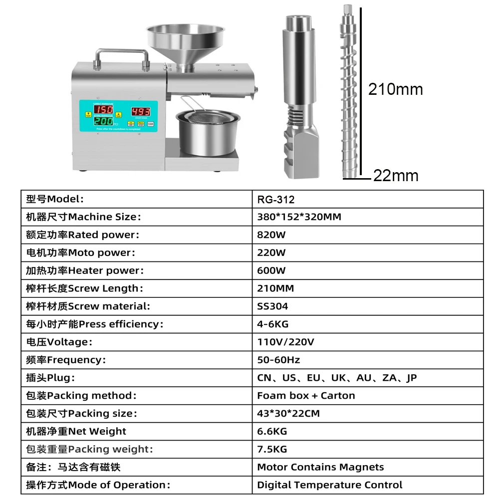 RG312 новый обновленный домашний Масляный Пресс с цифровым температ...