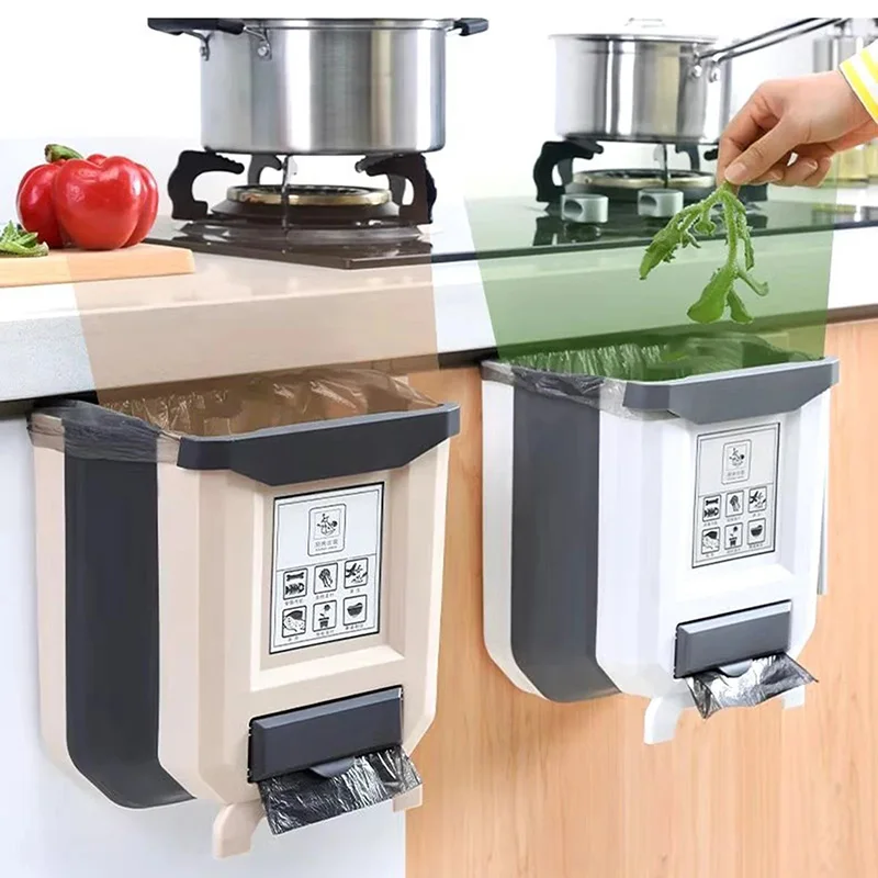 Складная мусорная корзина, подвесная мусорная корзина на дверцу кухонного шкафа, настенная корзина для мусора для хранения отходов в ванной, туалете