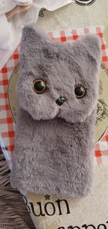 Милый плюшевый зимний чехол для телефона с кошкой для Huawei P Smar...