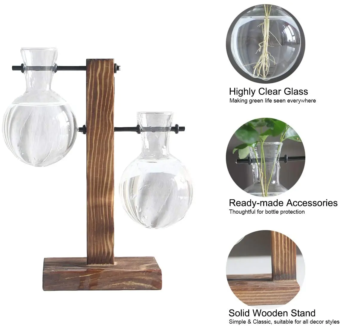 Terrarium Hydroponic вазы для растений Home прозрачный цветок бонсай, винтажный цветочный горшок, деревянная рамка, стеклянное настольное растение