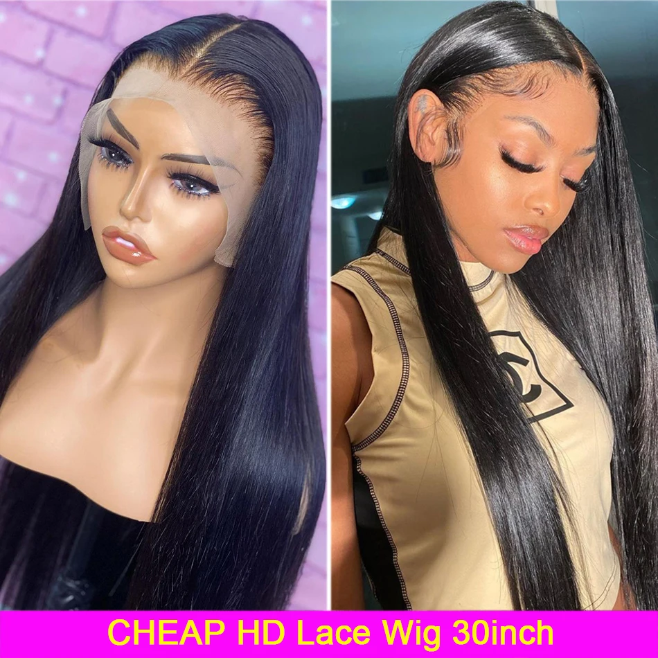 30 дюймов 13x6 Прозрачный HD кружевной передний парик прямые челове...