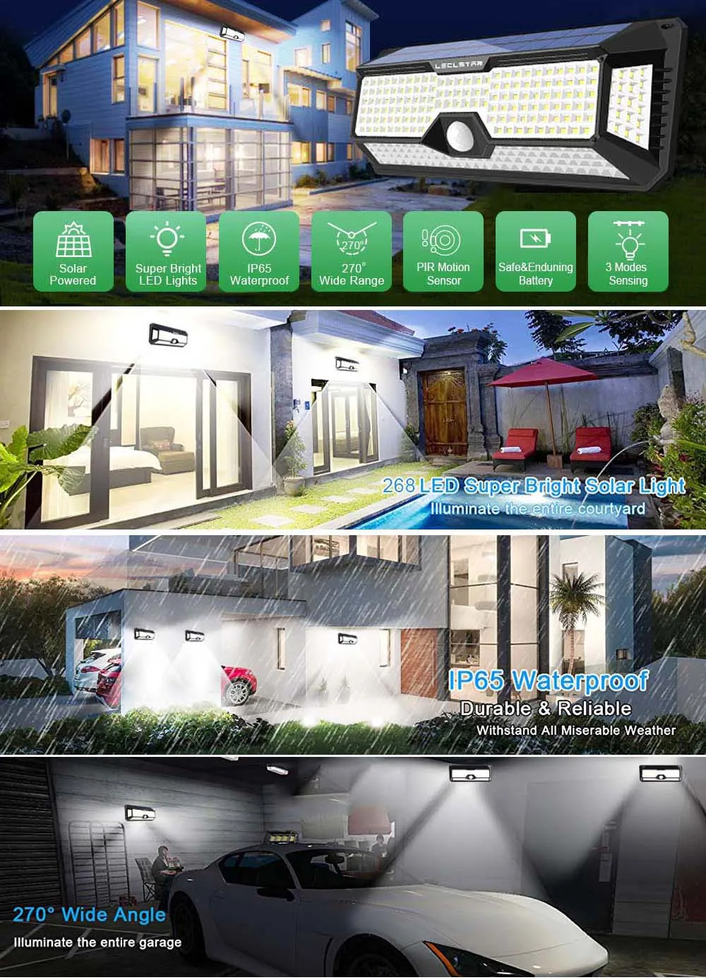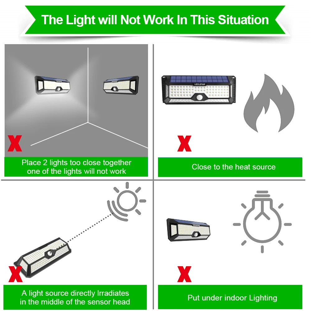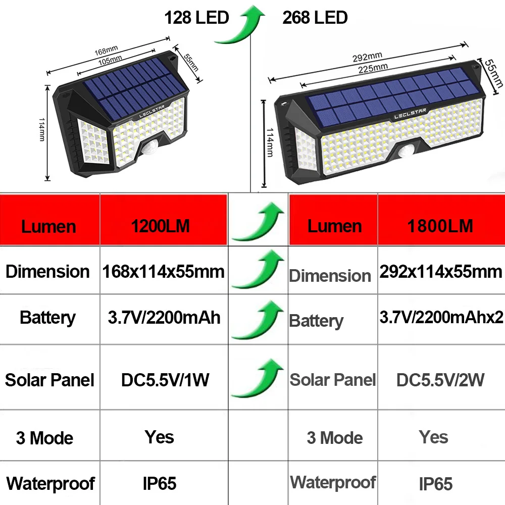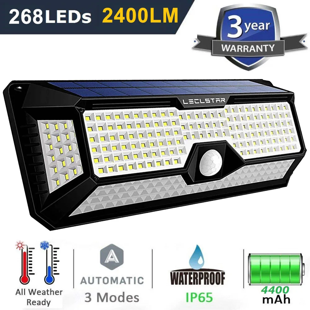 ☀【Супер яркое солнечное освещение 】 ---- LECLSTAR солнечное освещение на открытом воздухе, оснащенное супер яркими светодиодный бусинами, солнечное движение senaor освещение на открытом воздухе обеспечивает превосходное освещение люменов, солнечный датчик LECLSTAR, который намного ярче, чем другие аналогичные светодиодный светильник на солнечных батареях ☔Водонепроницаемость IP65 --- наружные солнечные огни изготовлены из прочного АБС-материала, вам не нужно беспокоиться об использовании под дождем. Солнечный датчик движения также может выдерживать все виды тяжелых погодных условий, солнечные огни на открытом воздухе являются водонепроницаемыми, термостойкими и морозостойкими, они могут выдерживать другие экстремальные погодные условия ☀【 Датчик движения является более чувствительным 】 --- легко предотвращает воров от входа в ваш дом в ночное время и кражи вашей собственности, встроенный PIR датчик движения нашего солнечного светильник s Открытый может обнаружить до 120 градусов, автоматический светильник, когда он определяет движение в ночное время.