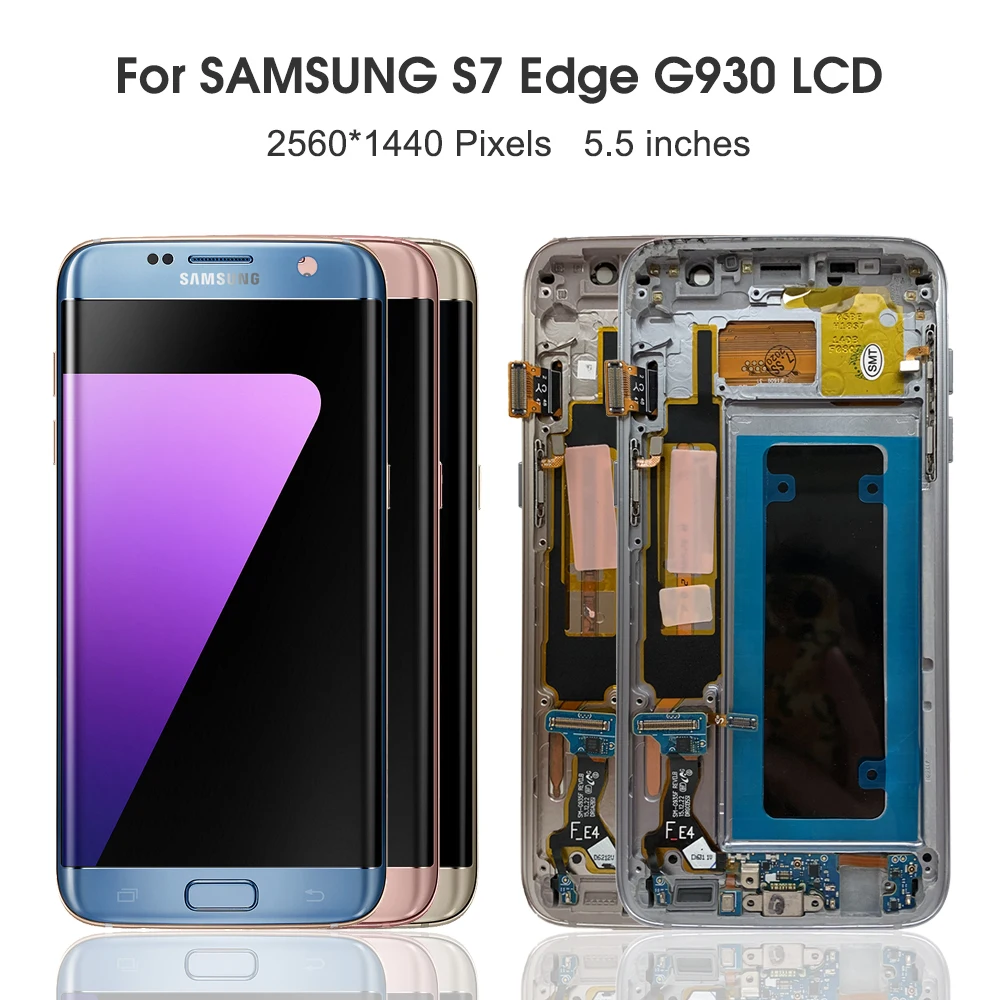 Оригинальный ЖК-дисплей с рамкой для SAMSUNG Galaxy S7 Edge, ЖК-дисплей с сенсорным экраном и дигитайзером в сборе для Samsung S7Edge G935 G935F