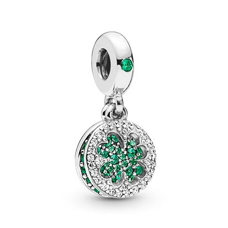 Бусина-Шарм клевер, серебристая, с зеленой эмалью, для европейских браслетов Пандоры, 1 шт., 2021