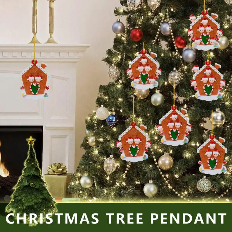 Рождественский бисквитный кулон в виде домика Рождественские Подвески персонализированные деревянные Рождественские Елочные бисквитные домики Семейные рождественские подвесные украшения
