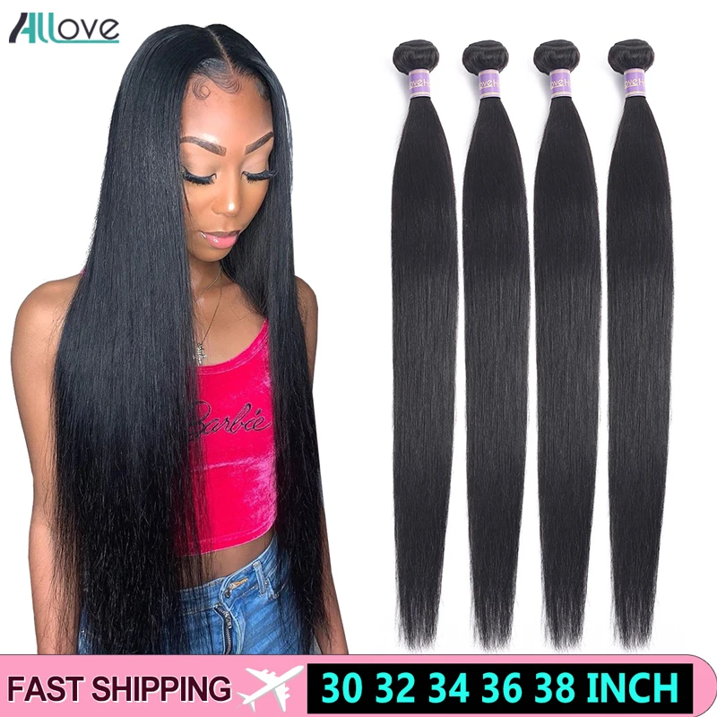 Прямые Пучки Allove с застежкой, перуанские человеческие волосы, пу...