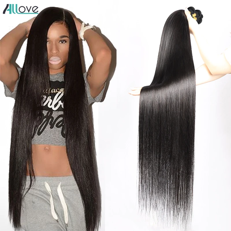 Пряди человеческих волос, индийские прямые пучки, 30-дюймовые длинные человеческие волосы Remy для наращивания, 3 или 4 пучка, сделки для женщин, двойной уток