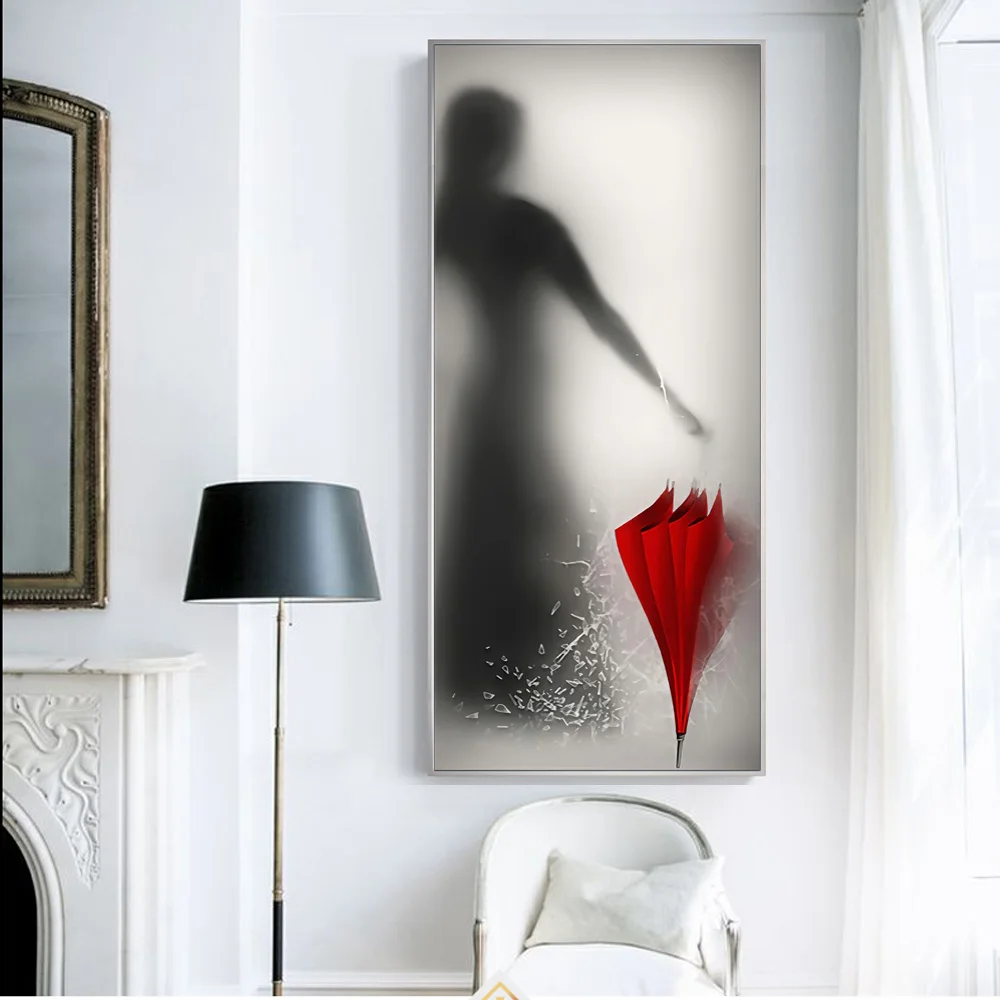 Современная сексуальная девушка с красным зонтиком, плакаты и принты, скандинавский декор, искусство на стену, очаровательное искусство для гостиной