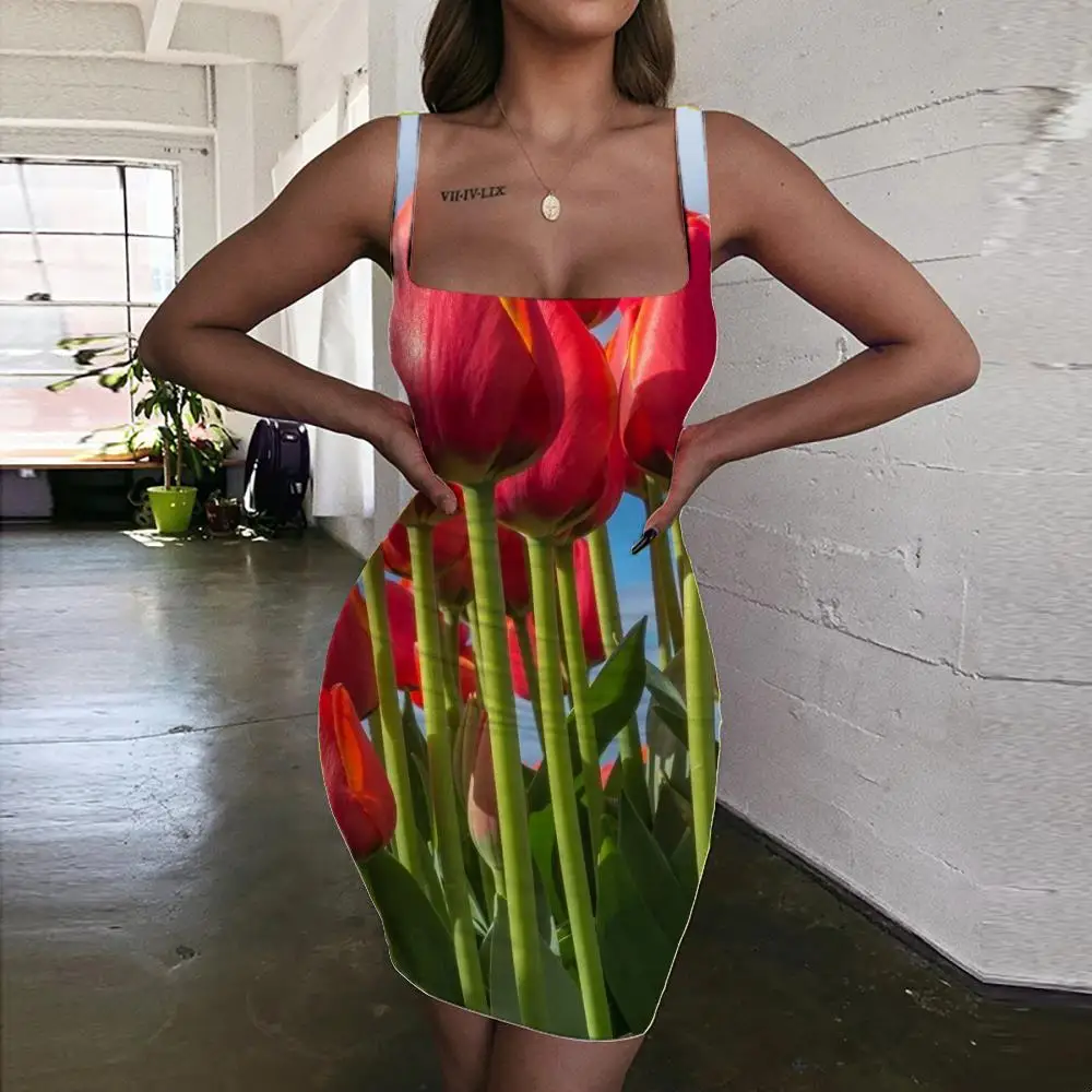 Женское облегающее платье KYKU, летнее пляжное платье с 3D-принтом, с цветами и головокружением