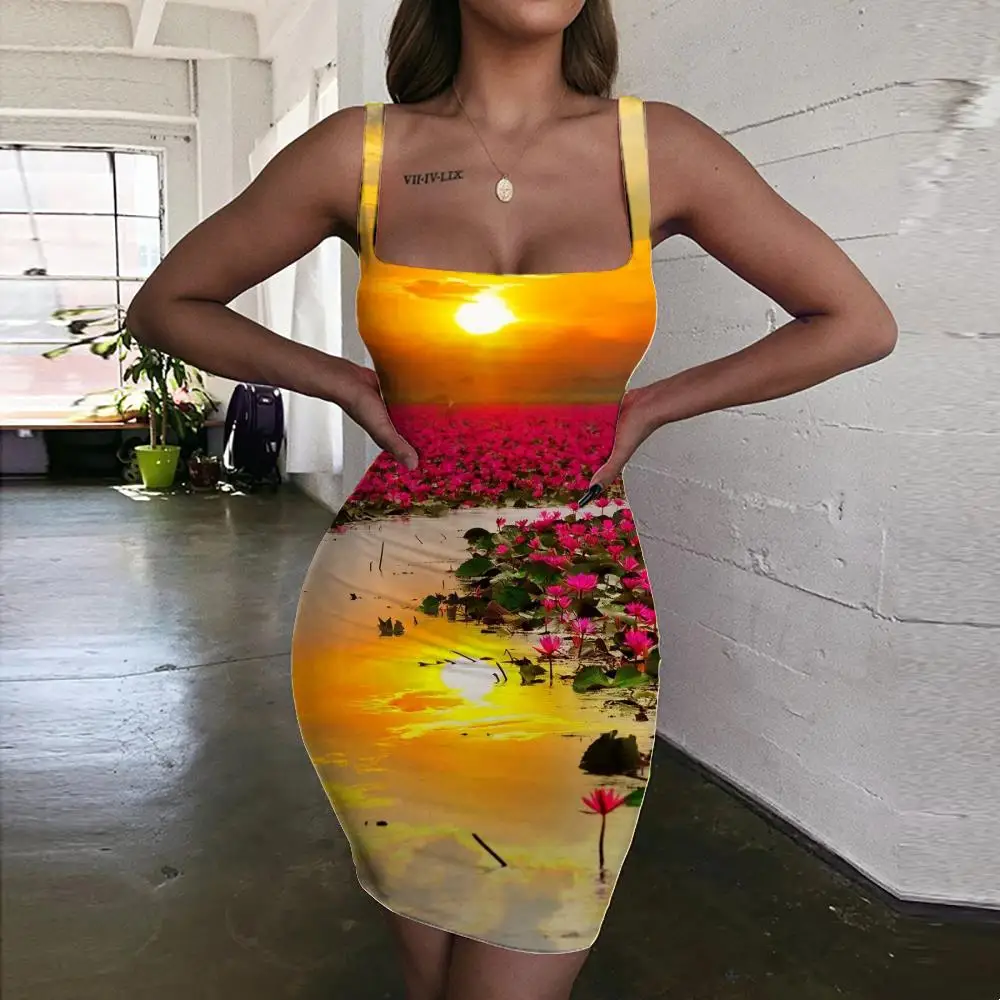 Женское облегающее платье KYKU, летнее пляжное платье с 3D-принтом ...