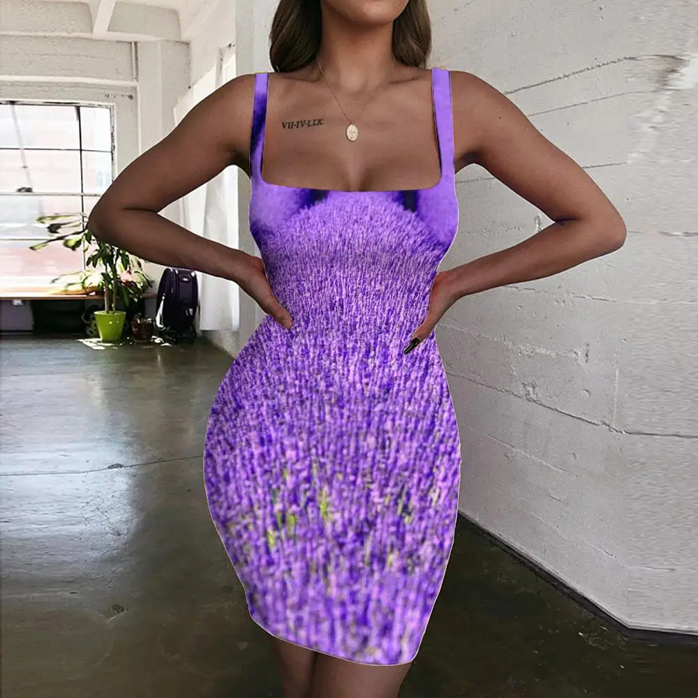 Женское платье с абстрактным принтом KYKU, фиолетовое облегающее пл...