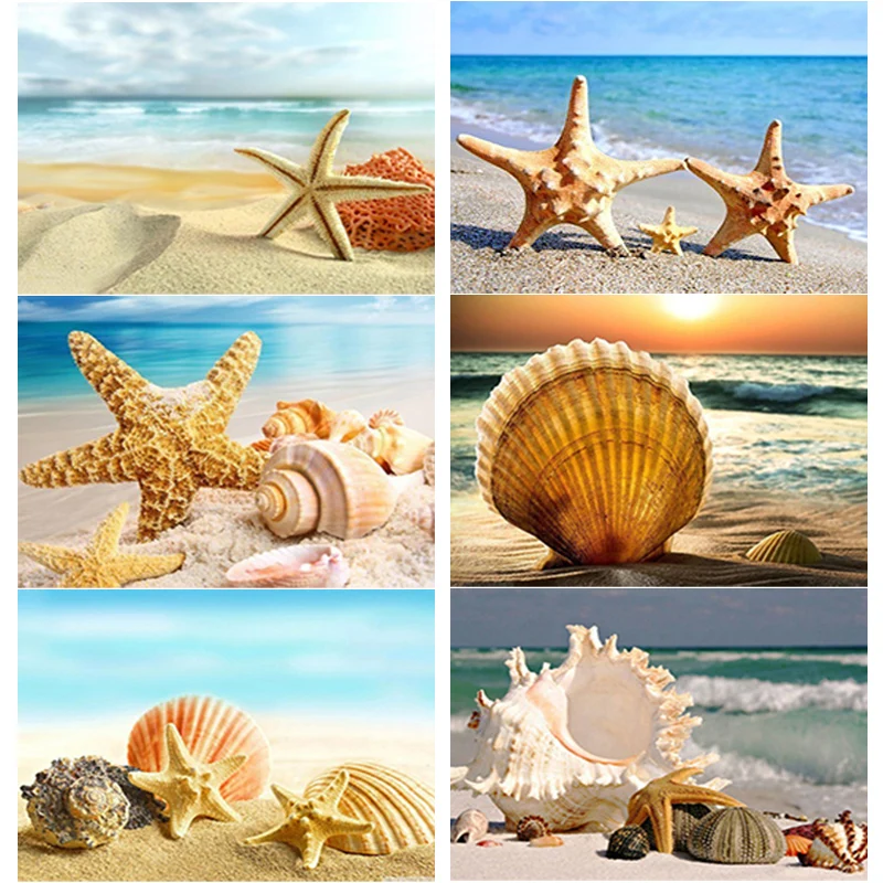 Алмазная 5D картина сделай сам с видом на море, полноразмерная вышивка крестиком, квадратная, круглая, с дрелью, с морскими звездами, домашний декор, художественный подарок
